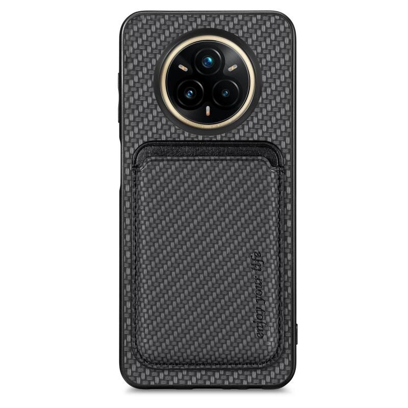 Θήκη τηλεφώνου Realme 14 Pro+ από ανθρακονήματα και δέρμα με κάρτες και MagSafe (Μαύρο)