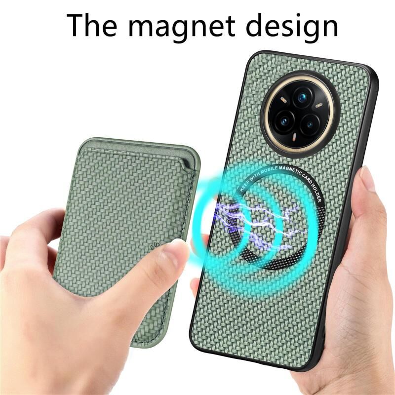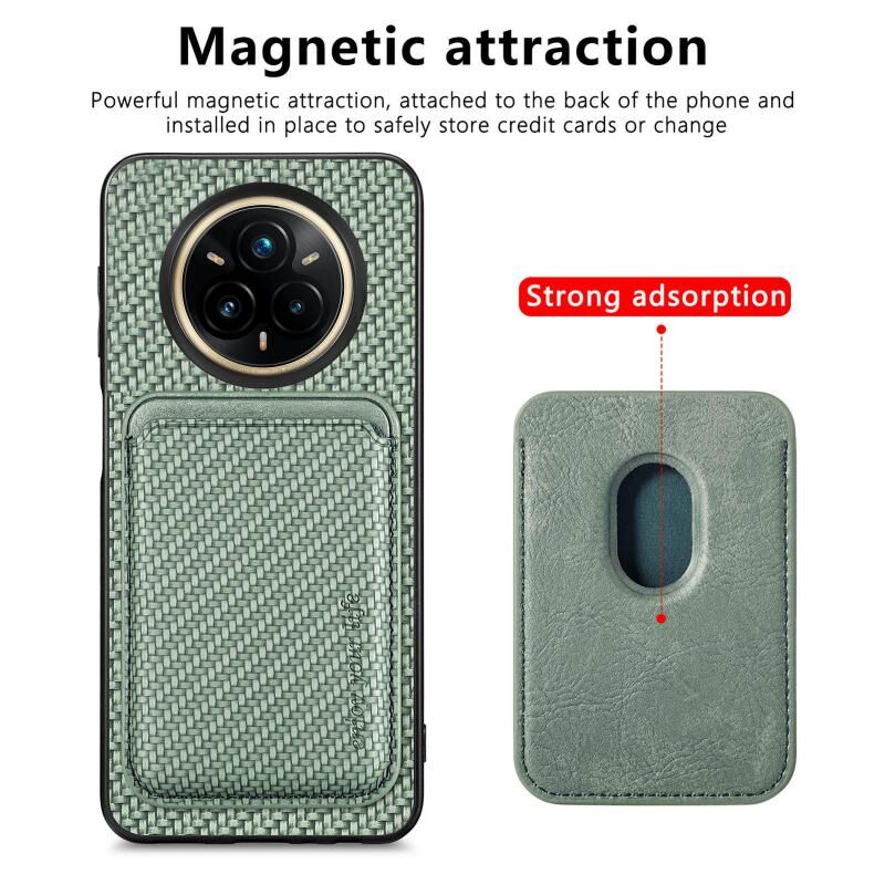 For Realme 14 Pro Carbon Fiber Leather Card Magsafe Phone Case(Green)