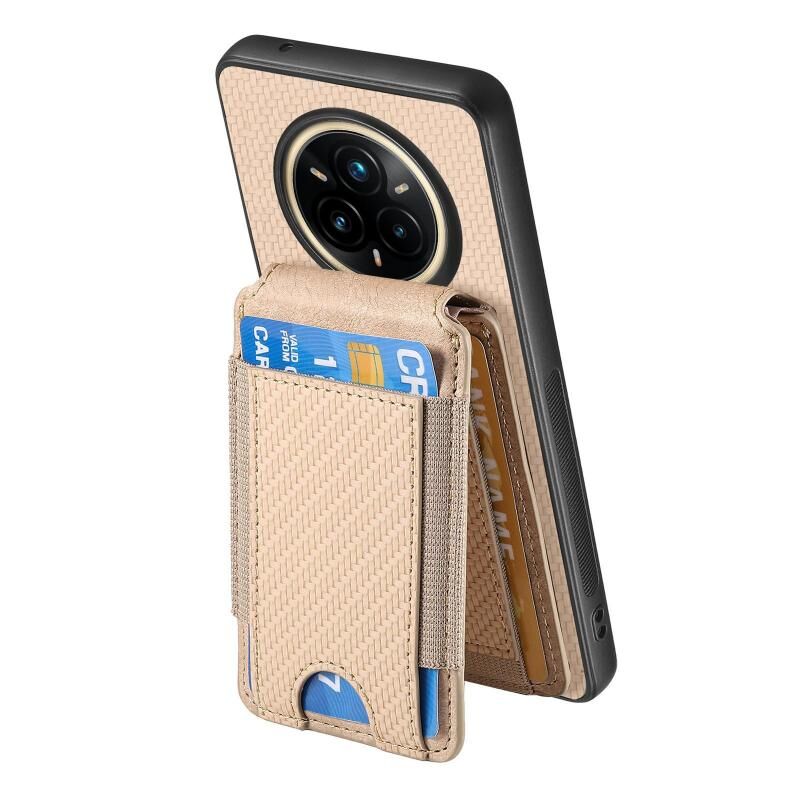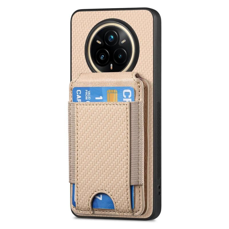 For Realme 14 Pro+ Carbon Fiber Vertical Flip Wallet Stand Phone Case(Khaki)