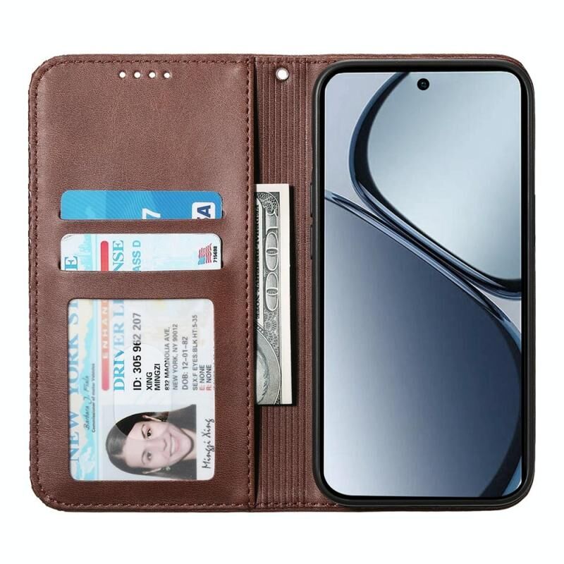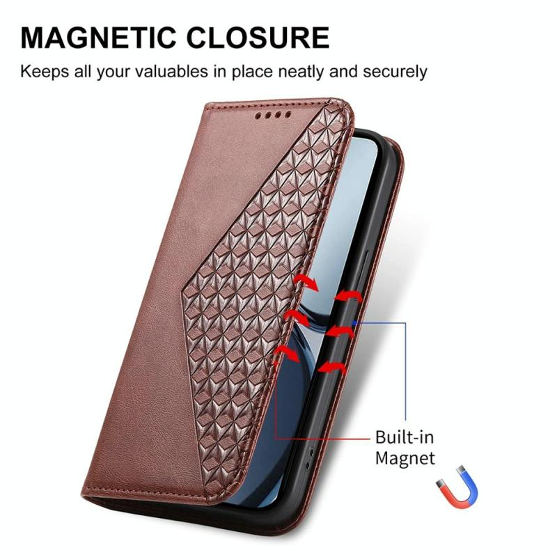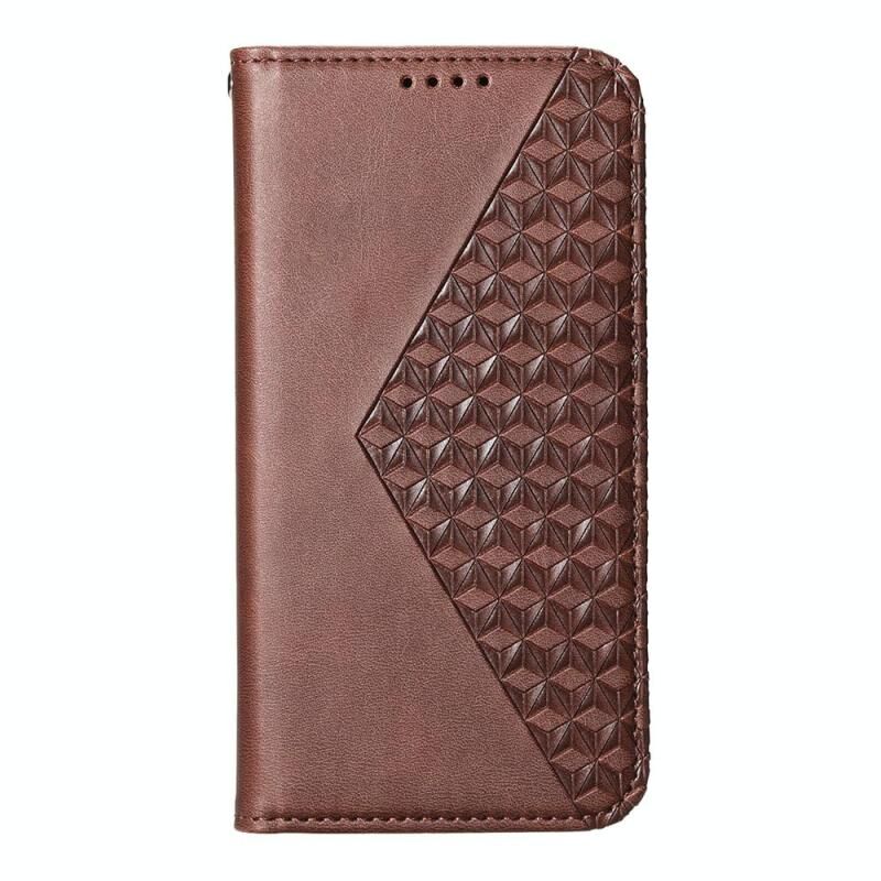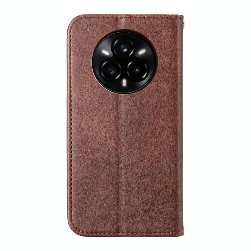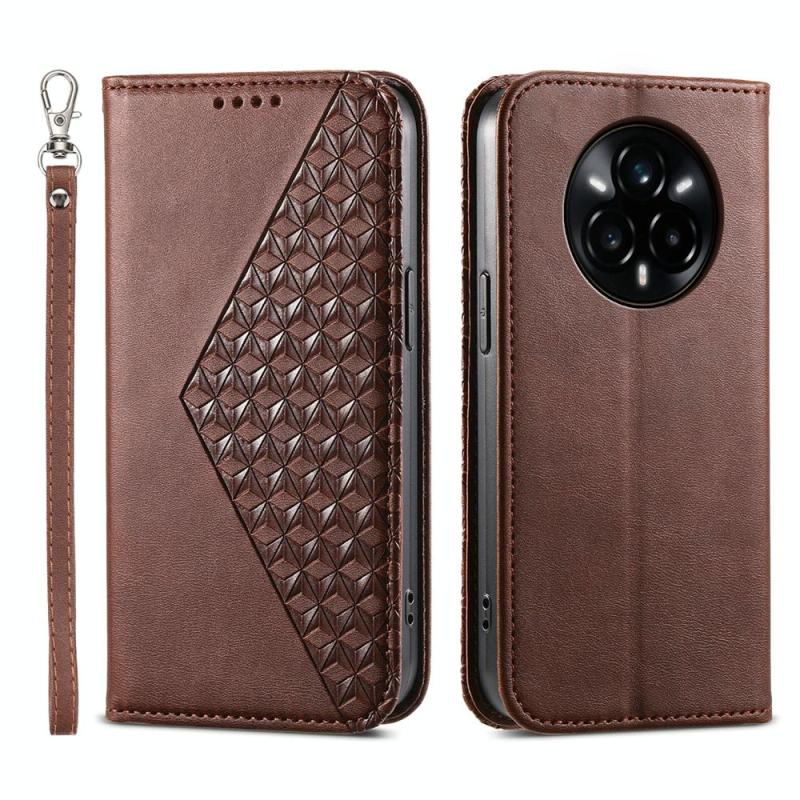 Θήκη τηλεφώνου από μαγνητικό δέρμα για Realme 14 Pro+ με υφή Cubic Grid Calf (Καφέ)