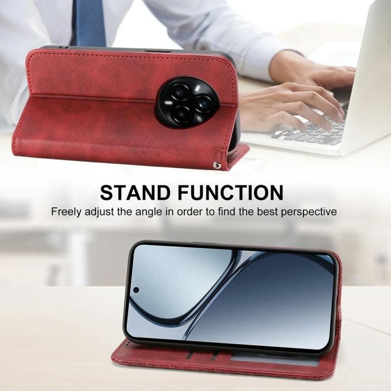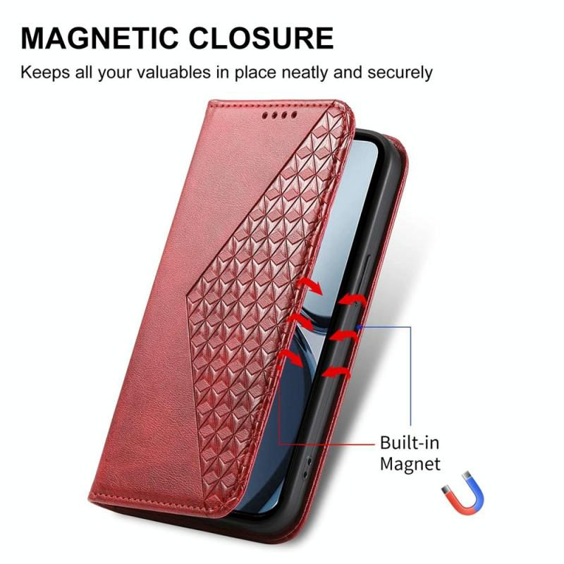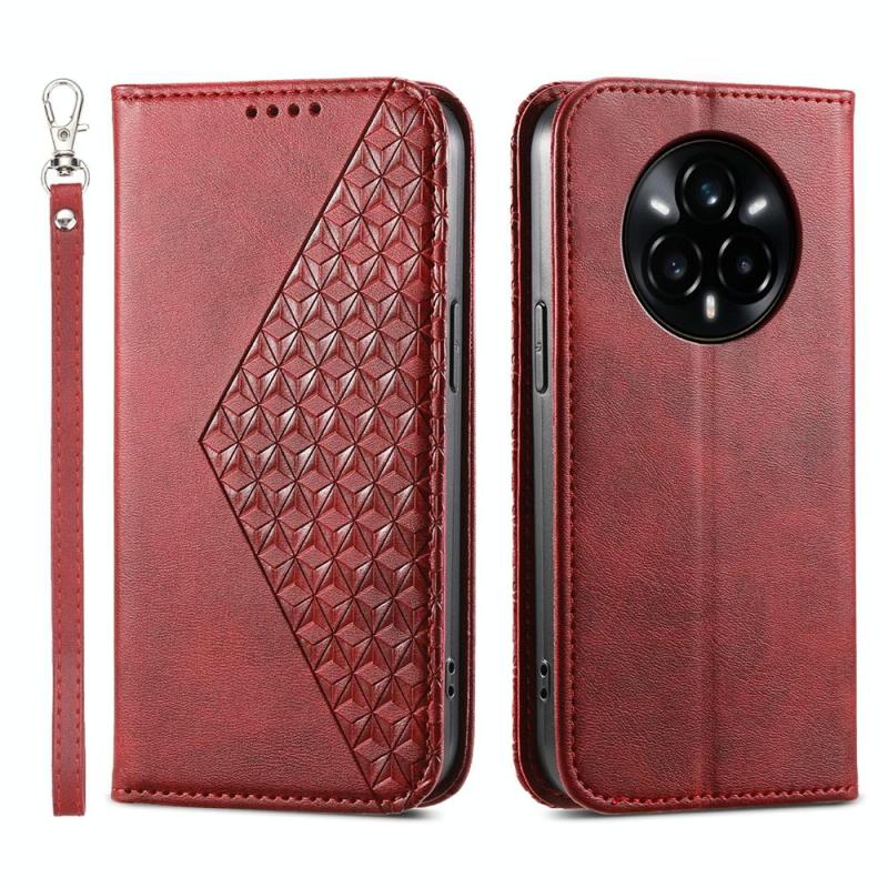 Θήκη τηλεφώνου από μαγνητικό δέρμα για Realme 14 Pro+ με υφή Cubic Grid Calf (Κόκκινο)