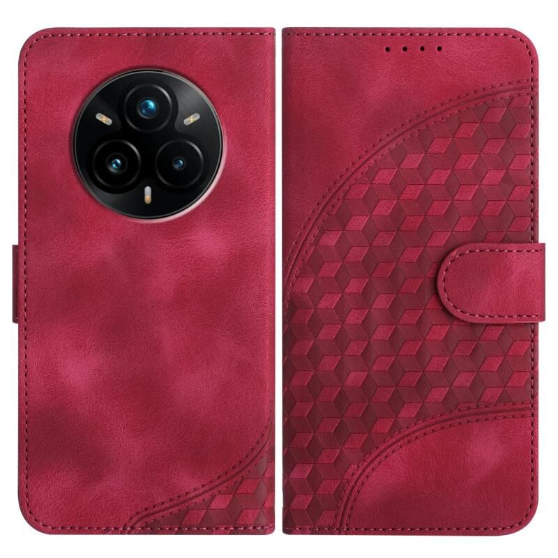 For Realme 14 Pro+ Elephant Head Embossed Phone Leather Case with Lanyard(Rose Red)
