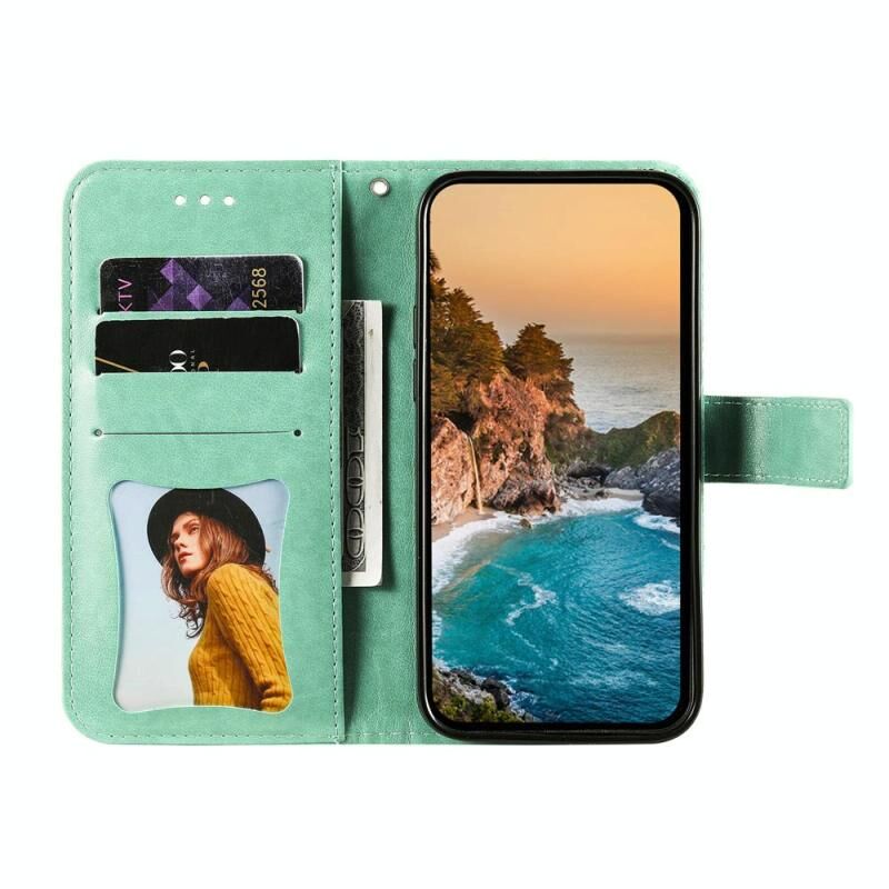 2. Λειτουργία πορτοφολιού: Η δερμάτινη θήκη είναι εξοπλισμένη με υποδοχές για κάρτες και ένα μικρό ποσό μετρητών.