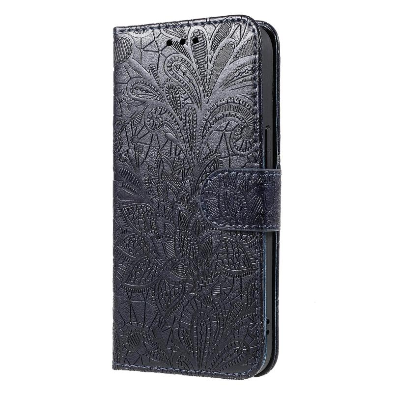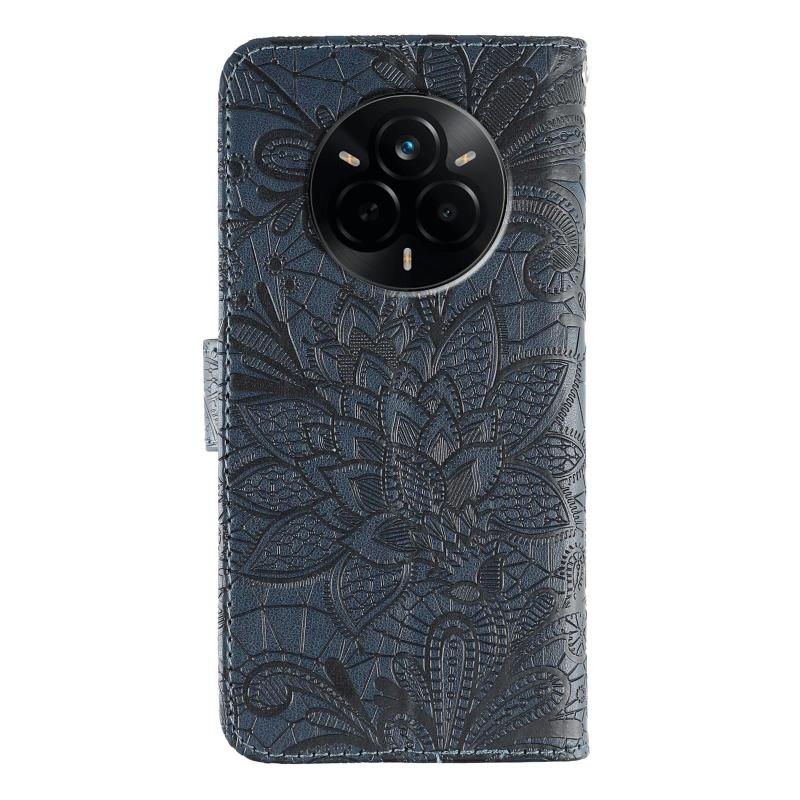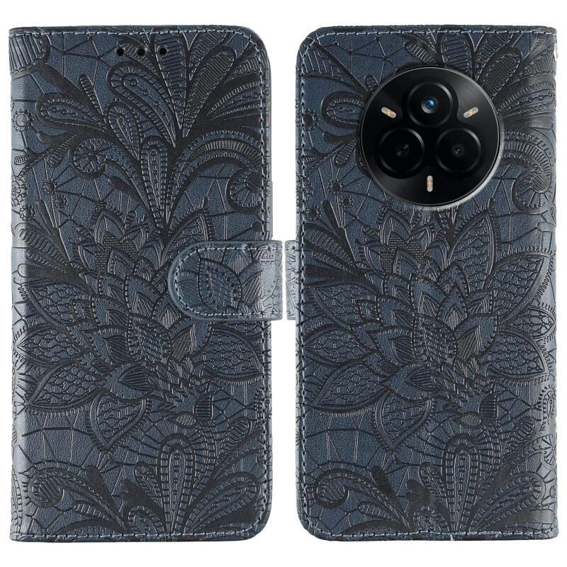 Θήκη Δερμάτινη Flip με Λουλούδια και Δαντέλα για Realme 14 Pro (Σκούρο Μπλε)