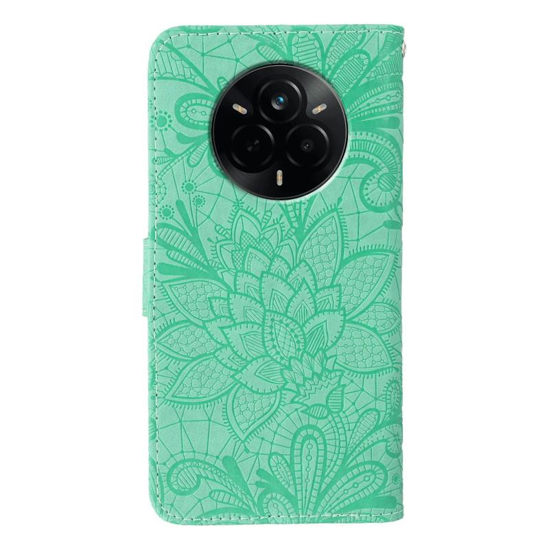 Θήκη Δερμάτινη Flip με Λουλούδια και Δαντέλα για Realme 14 Pro (Πράσινο)
