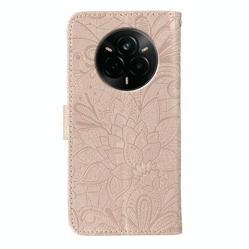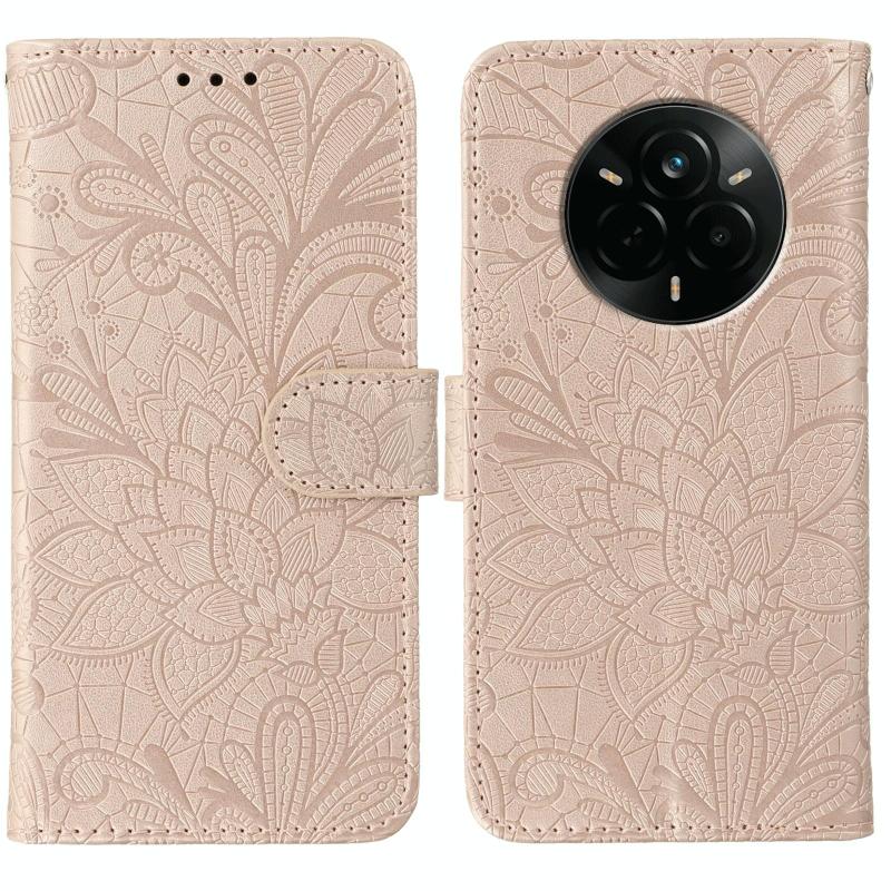 Θήκη Δερμάτινη Flip με Λουλούδια και Δαντέλα για Realme 14 Pro (Ροζ Χρυσό)