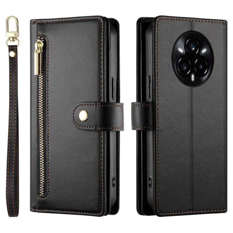 For Realme 14 Pro Nine Card-slot Zipper Wallet Bag Leather Phone Case(Black)