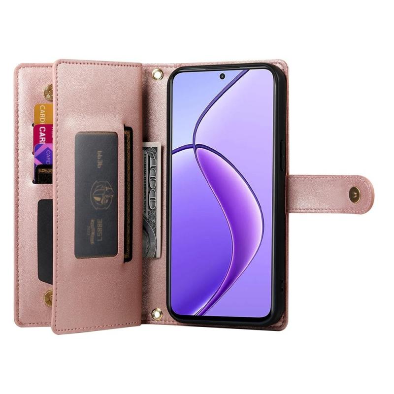 For Realme 14 Pro+ Nine Card-slot Zipper Wallet Bag Leather Phone Case(Pink)