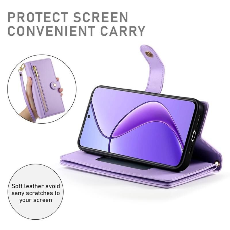 For Realme 14 Pro+ Nine Card-slot Zipper Wallet Bag Leather Phone Case(Purple)
