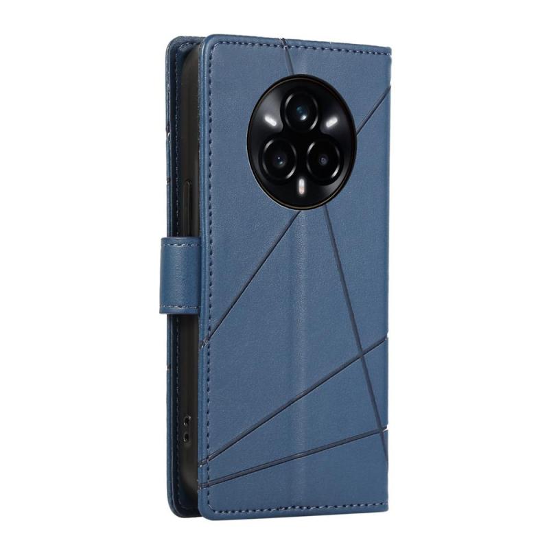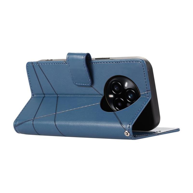 For Realme 14 Pro+ PU Genuine Leather Texture Embossed Line Phone Case(Blue)