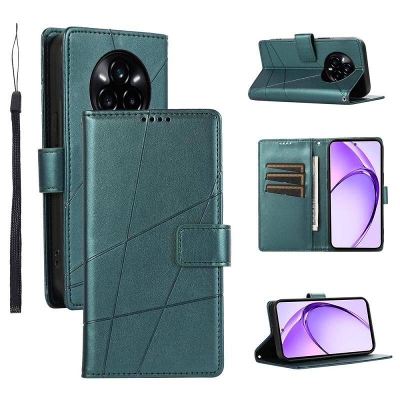 For Realme 14 Pro+ PU Genuine Leather Texture Embossed Line Phone Case(Green)