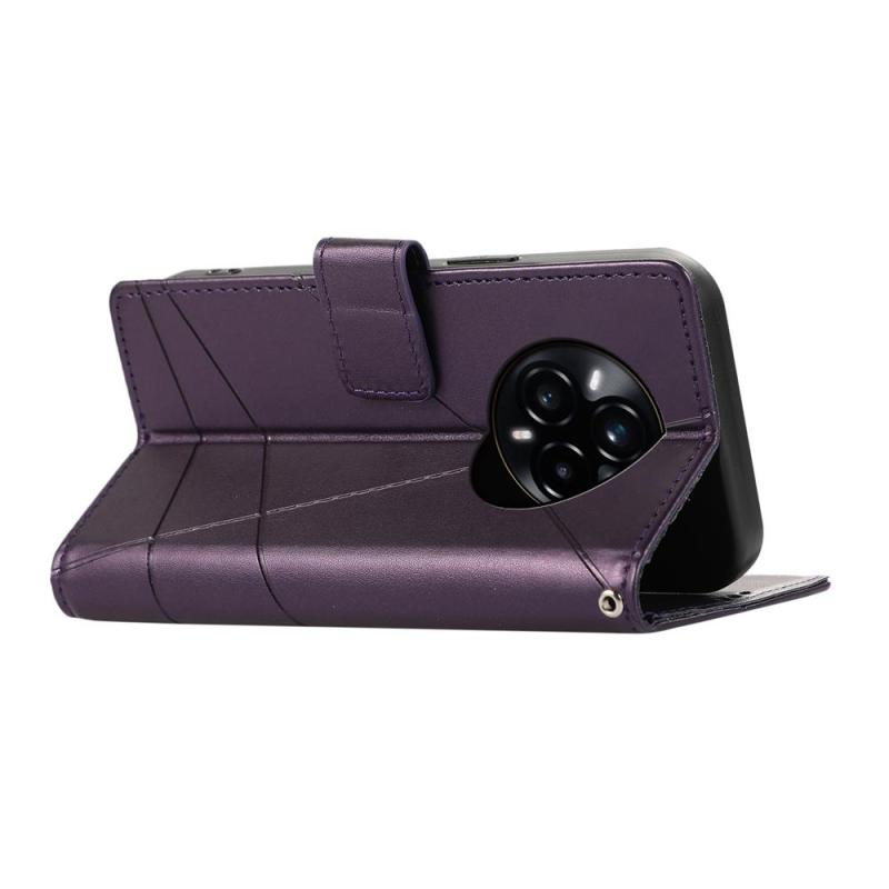 For Realme 14 Pro PU Genuine Leather Texture Embossed Line Phone Case(Purple)