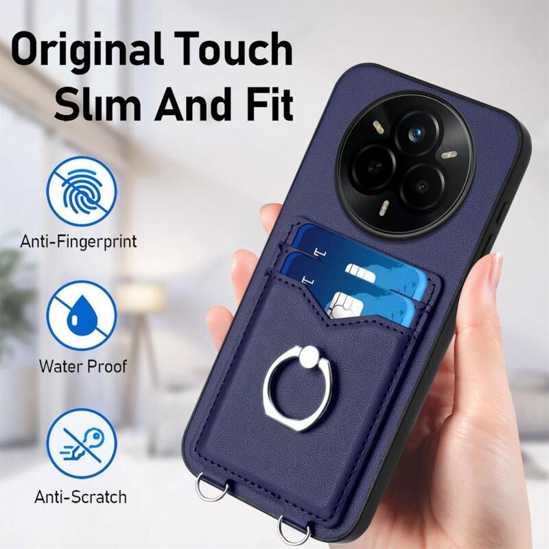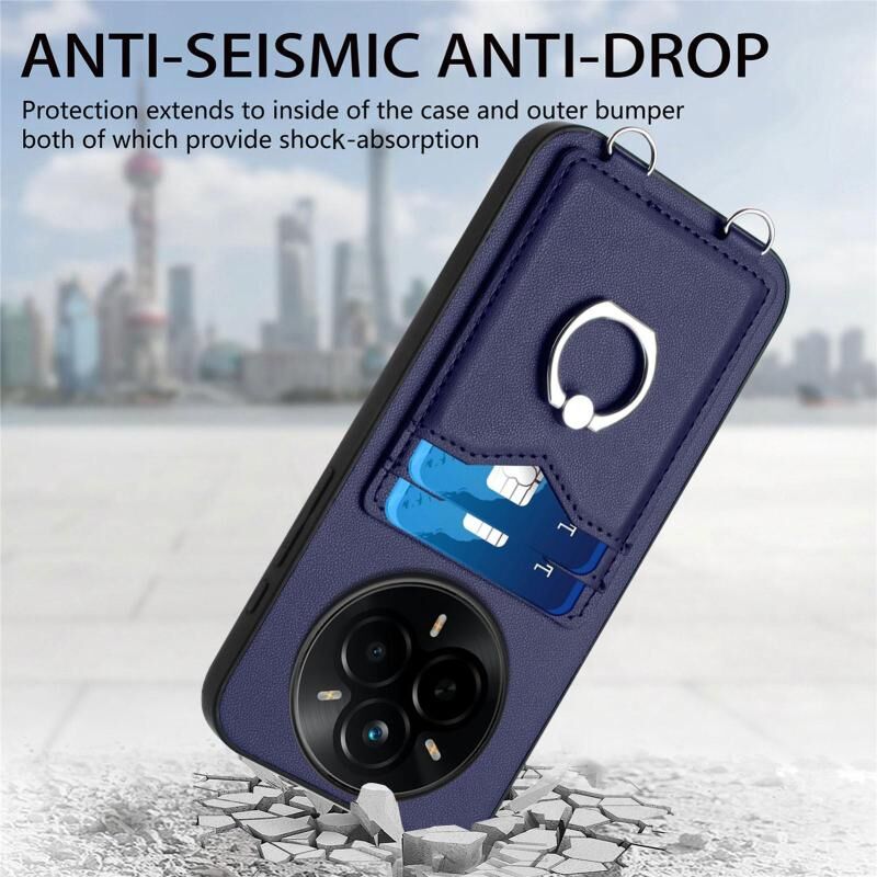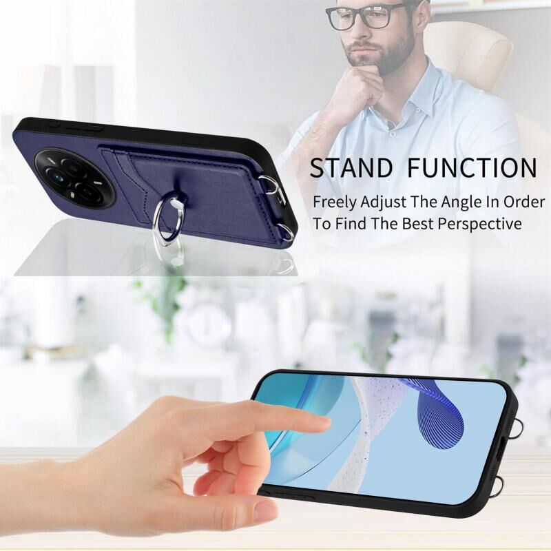 For Realme 14 Pro R20 Ring Card Holder Phone Case(Blue)
