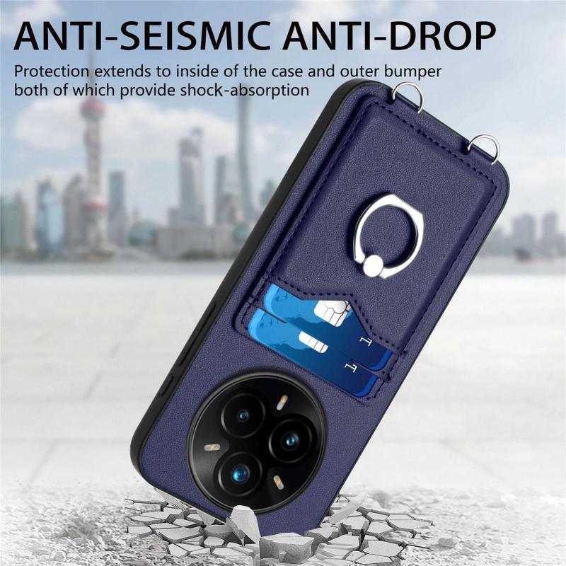For Realme 14 Pro+ R20 Ring Card Holder Phone Case(Blue)