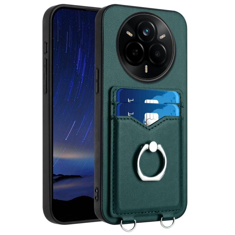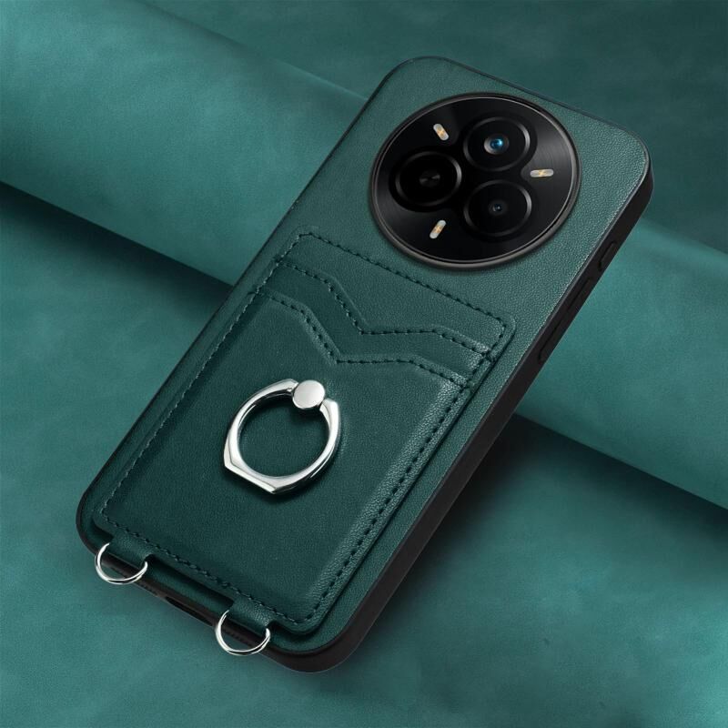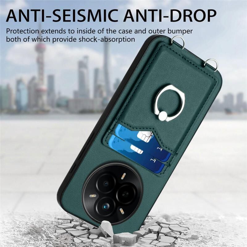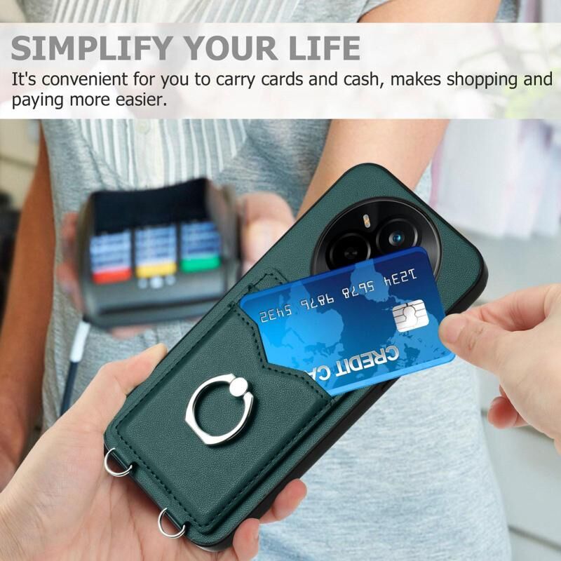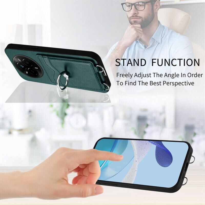 For Realme 14 Pro R20 Ring Card Holder Phone Case(Green)