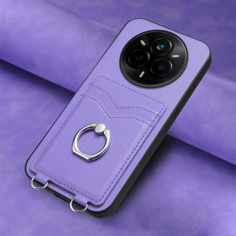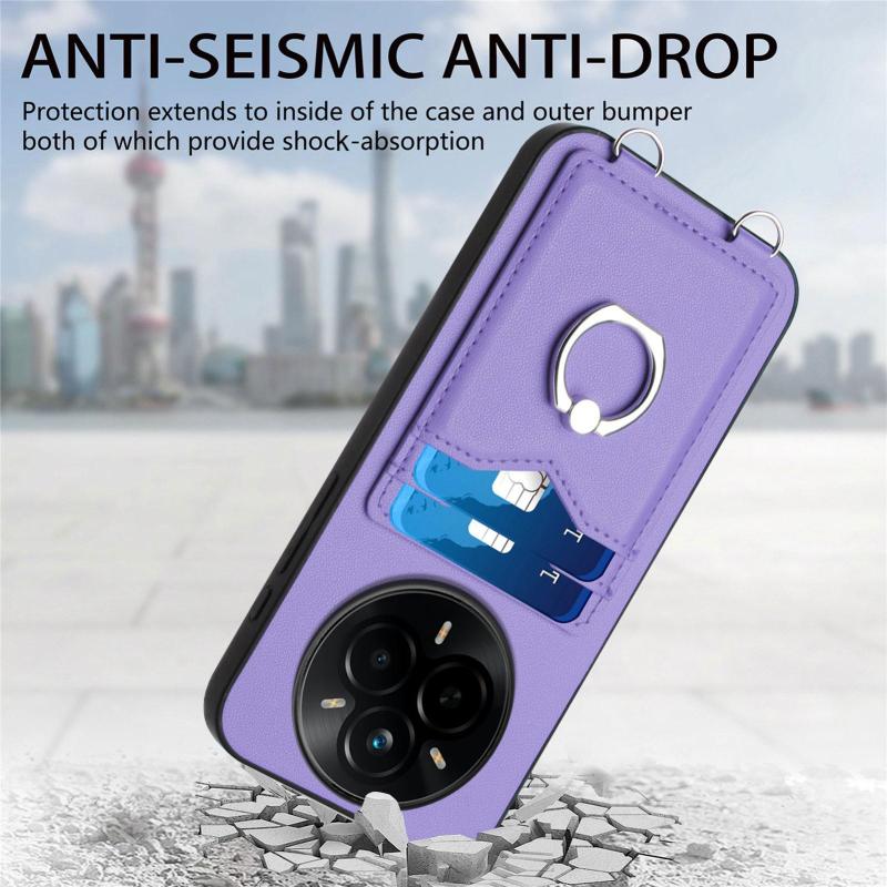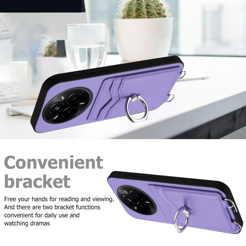 For Realme 14 Pro R20 Ring Card Holder Phone Case(Purple)