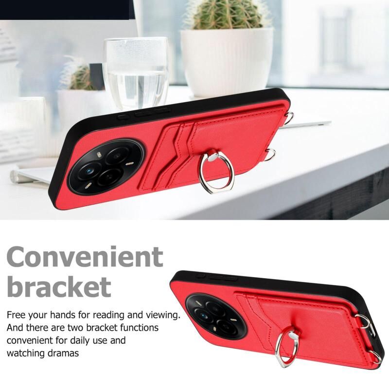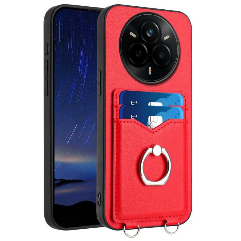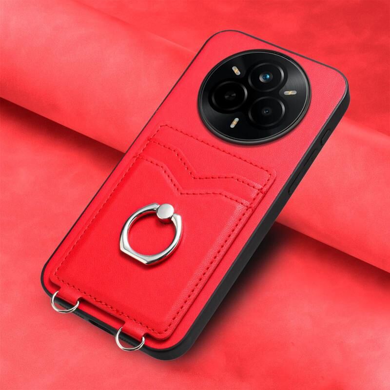 For Realme 14 Pro R20 Ring Card Holder Phone Case(Red)