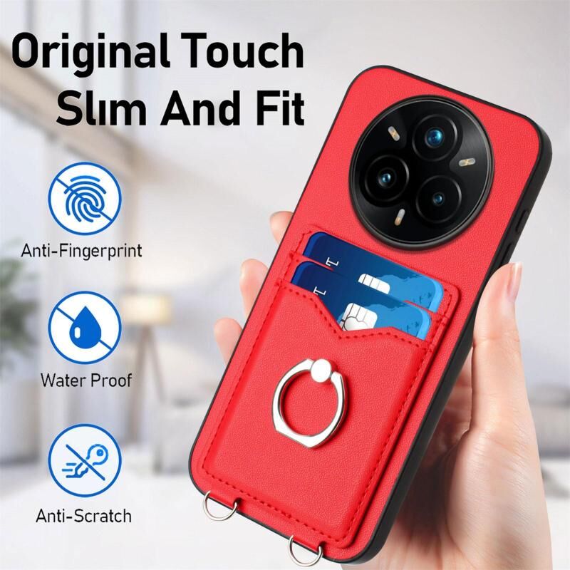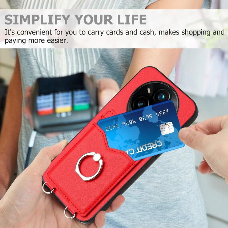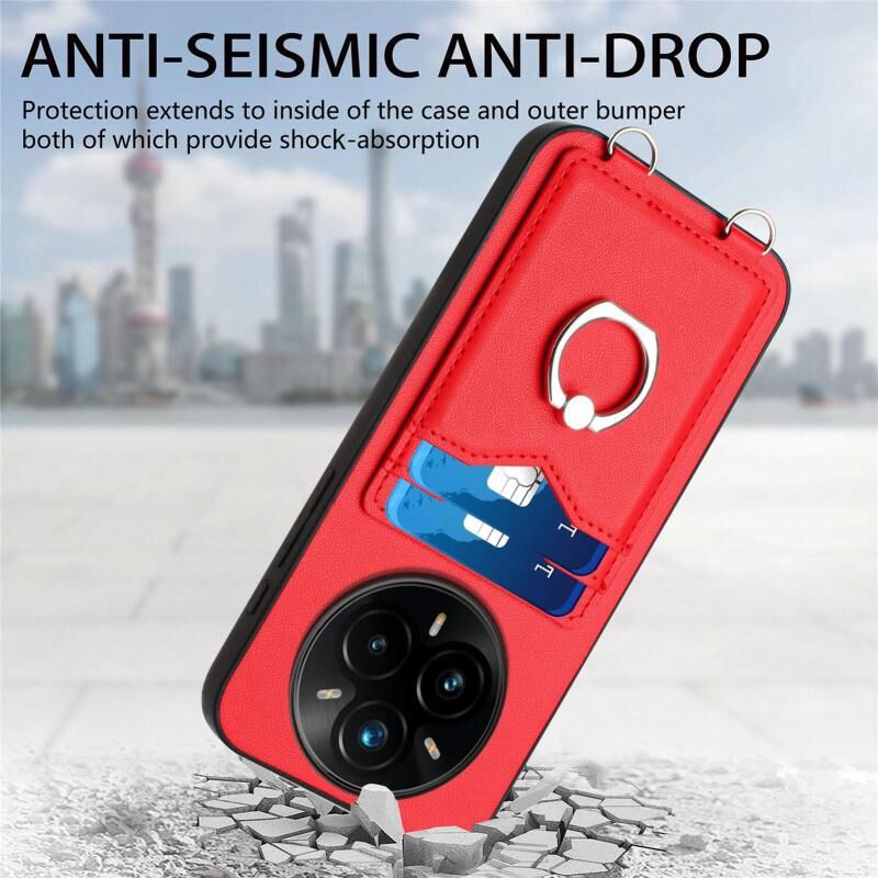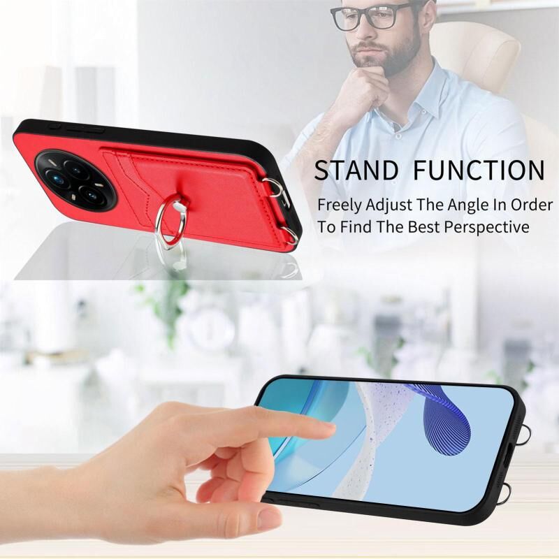 For Realme 14 Pro+ R20 Ring Card Holder Phone Case(Red)