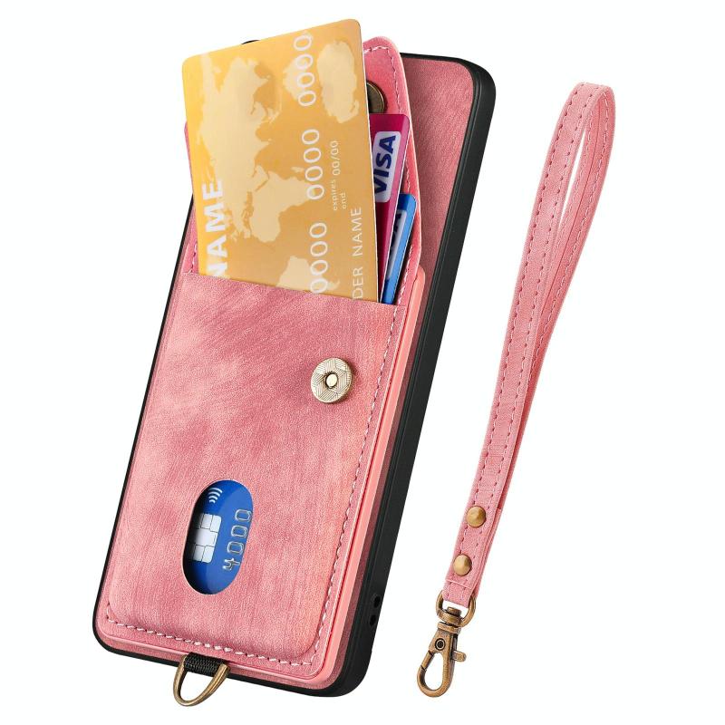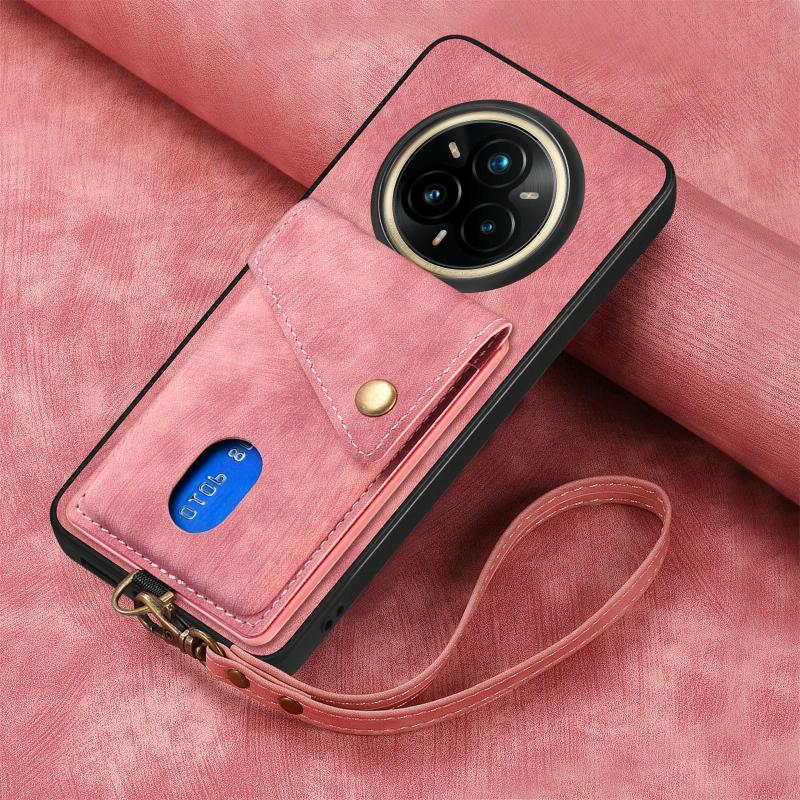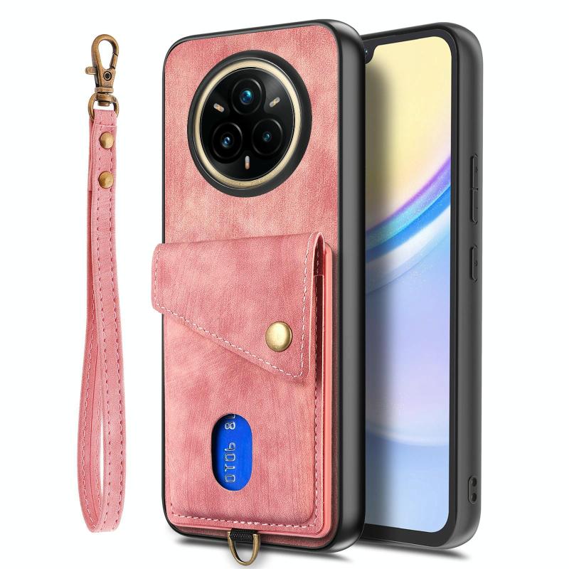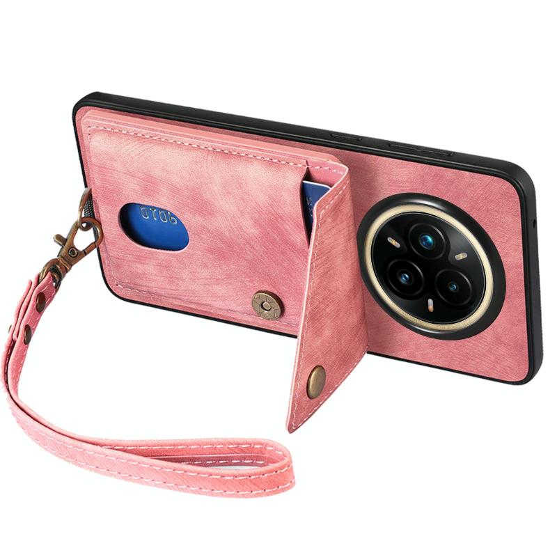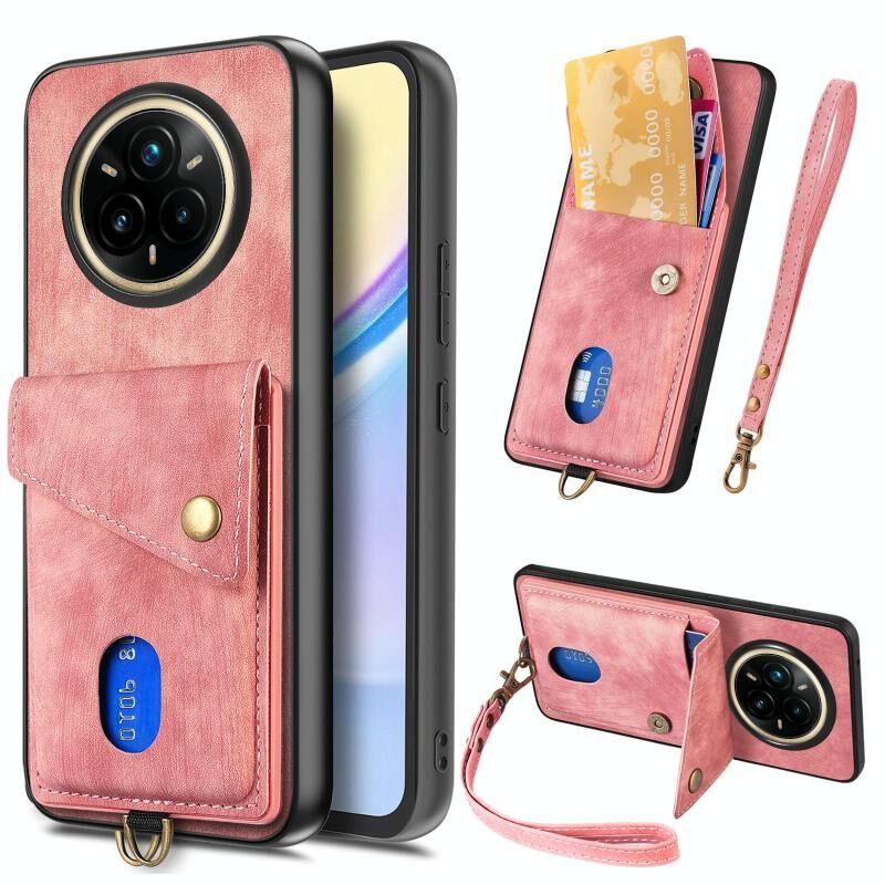 Θήκη Realme 14 Pro Retro με Κάρτες & Λουρί - Δερμάτινη (Ροζ)
