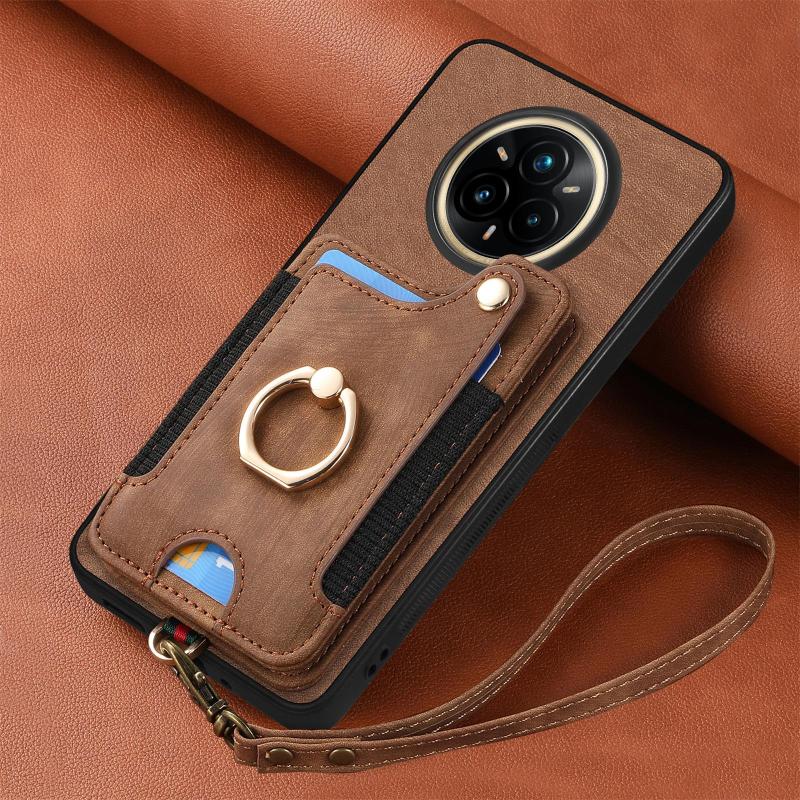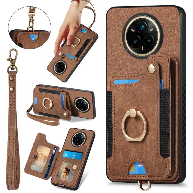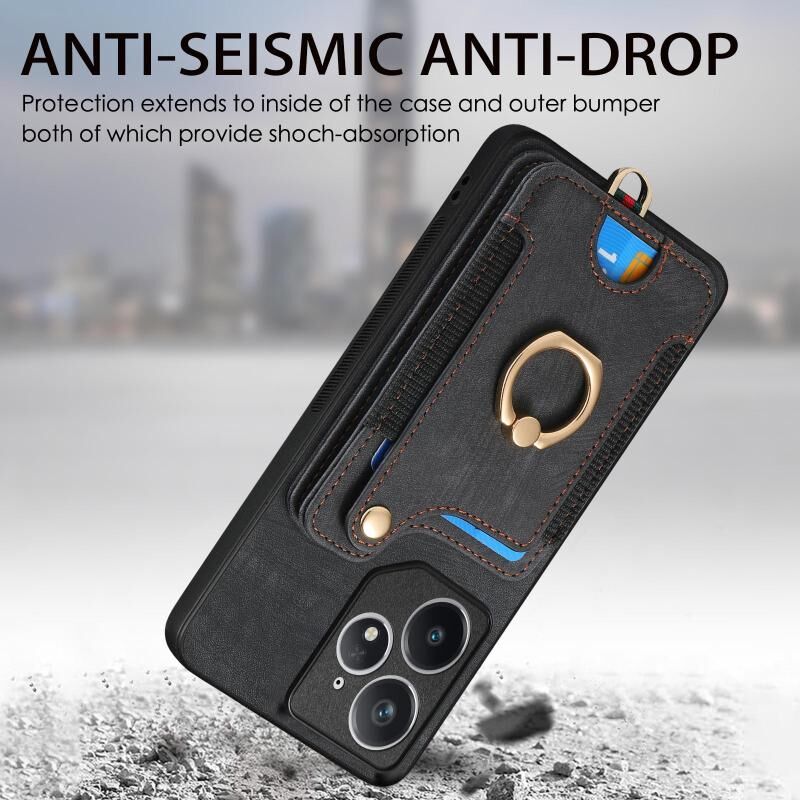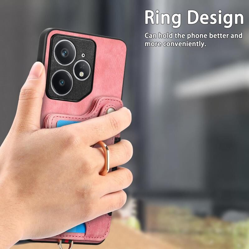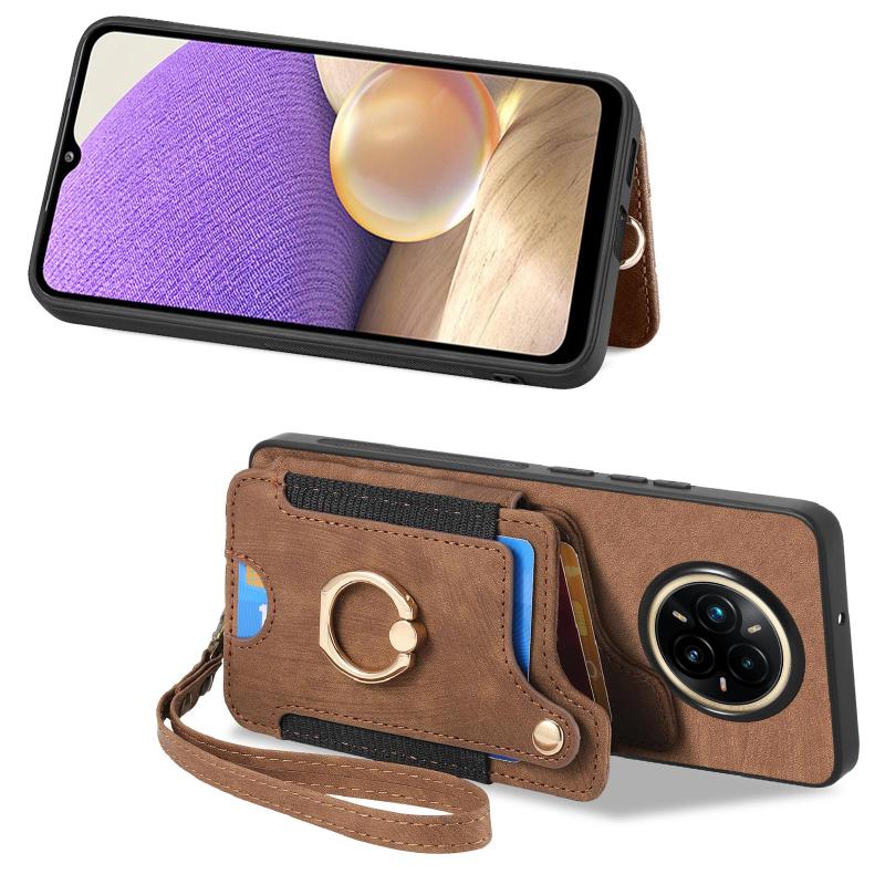 Θήκη Realme 14 Pro+ Retro Skin-feel με Δακτύλιο & Θήκη Καρτών (Καφέ)