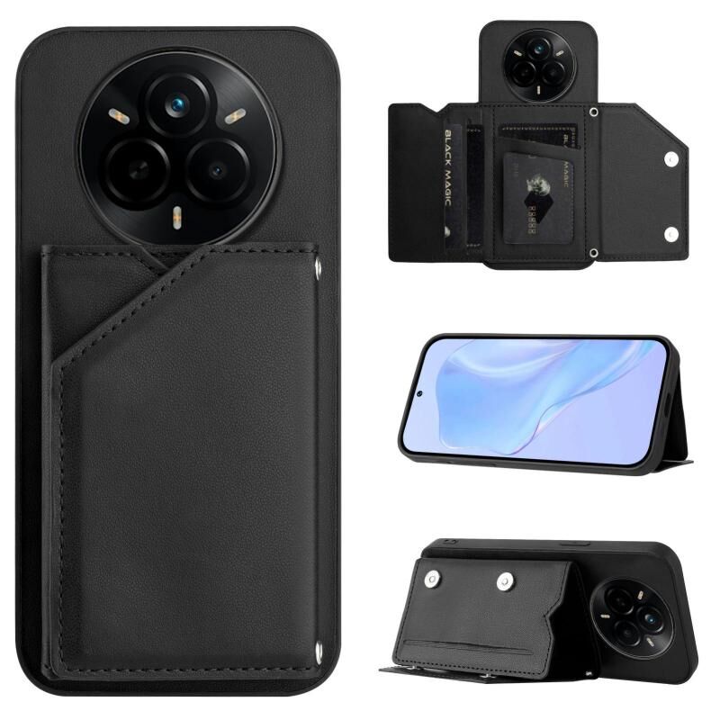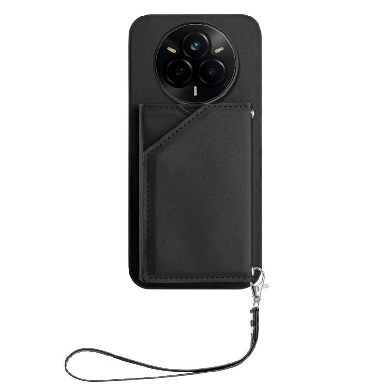 For Realme 14 Pro Skin Feel Four Card Slots Phone Case with Wrist Strap(Black)