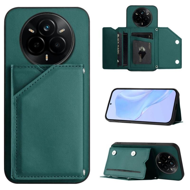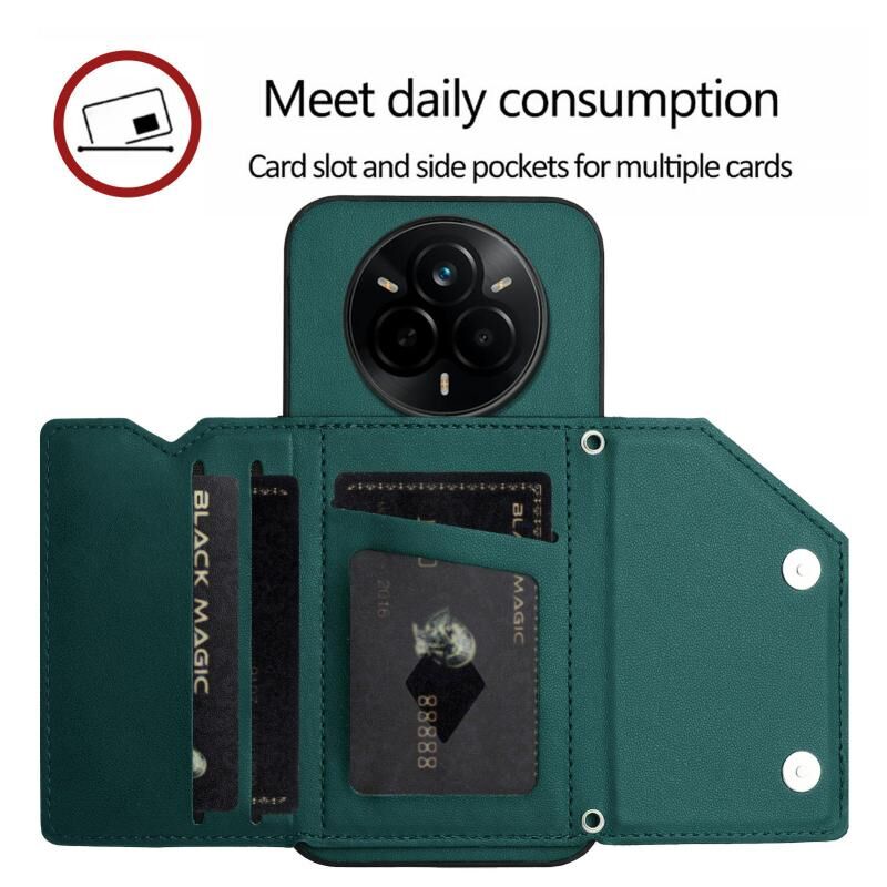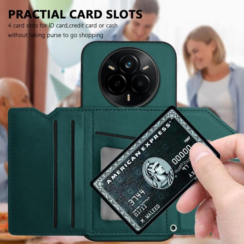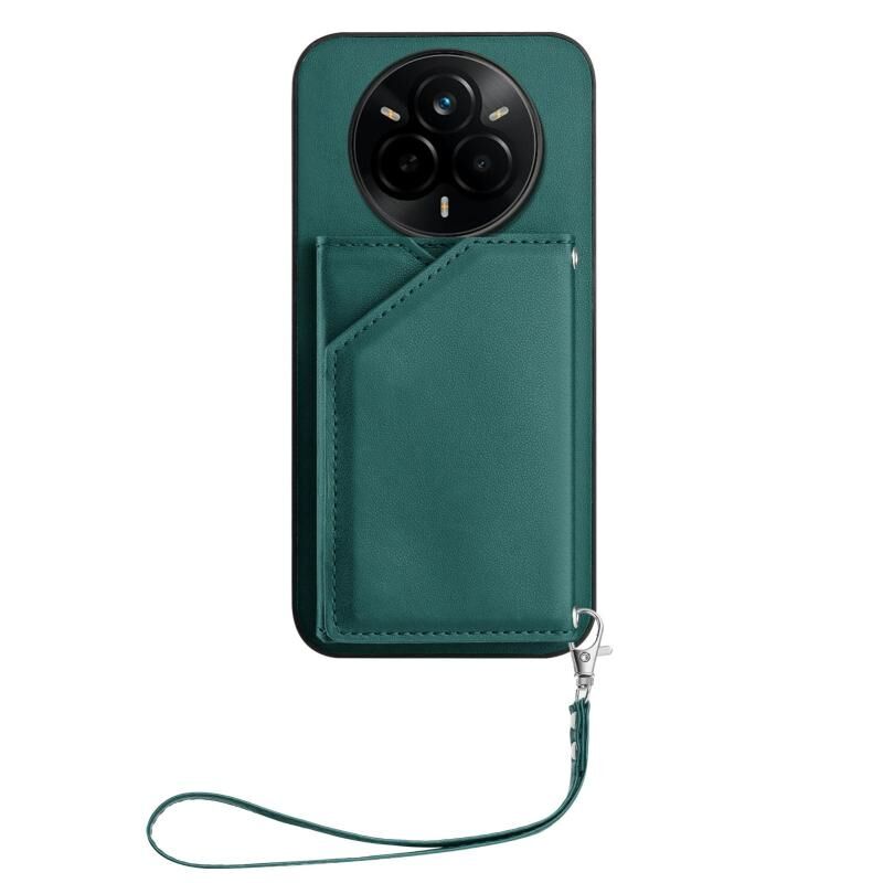 For Realme 14 Pro Skin Feel Four Card Slots Phone Case with Wrist Strap(Green)