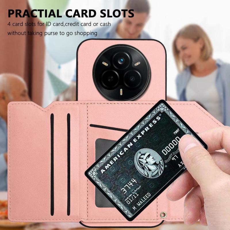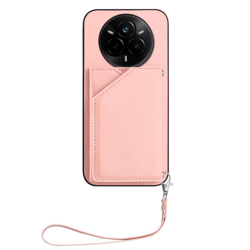 For Realme 14 Pro Skin Feel Four Card Slots Phone Case with Wrist Strap(Pink)