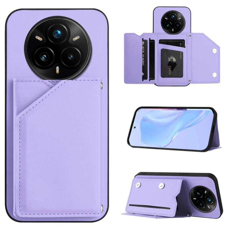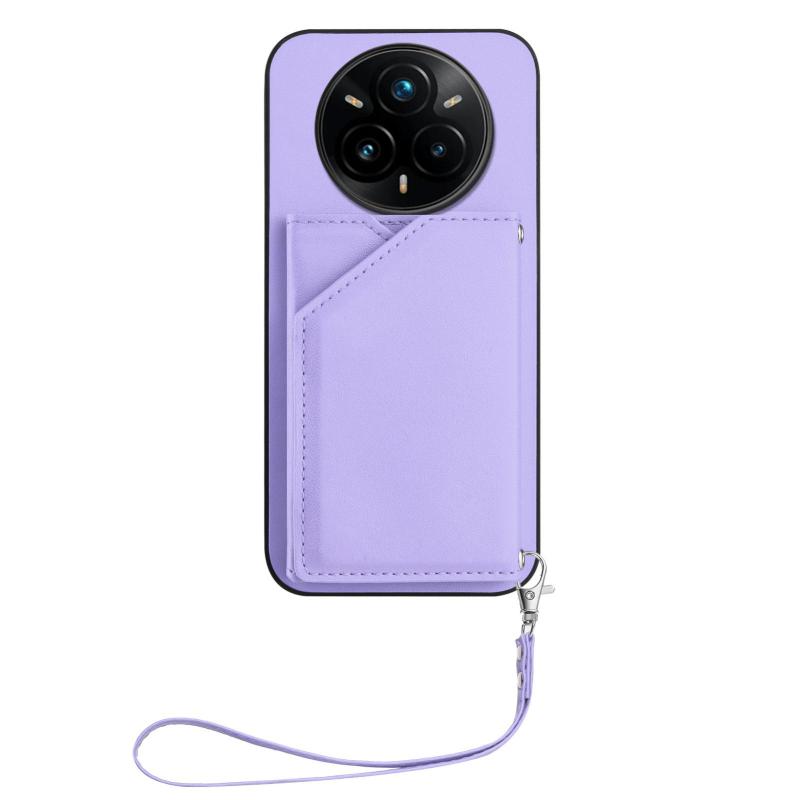 For Realme 14 Pro+ Skin Feel Four Card Slots Phone Case with Wrist Strap(Purple)