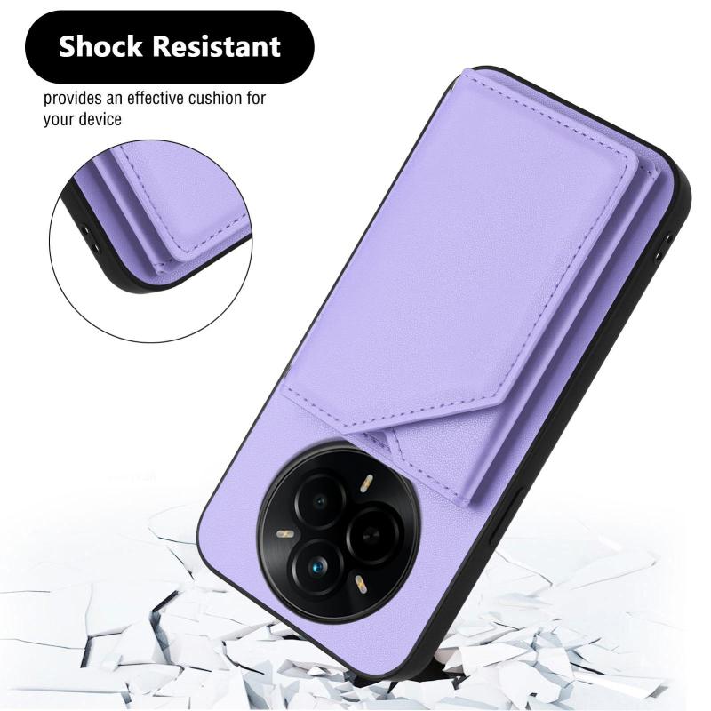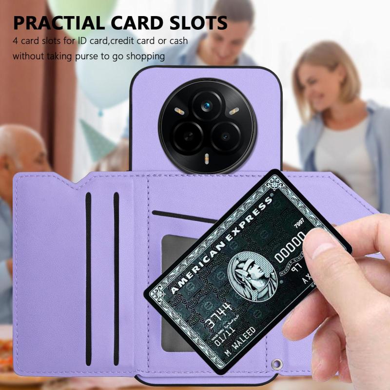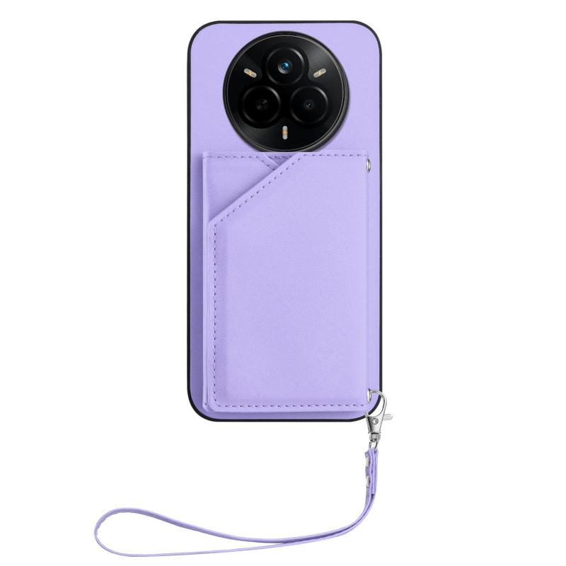 For Realme 14 Pro Skin Feel Four Card Slots Phone Case with Wrist Strap(Purple)
