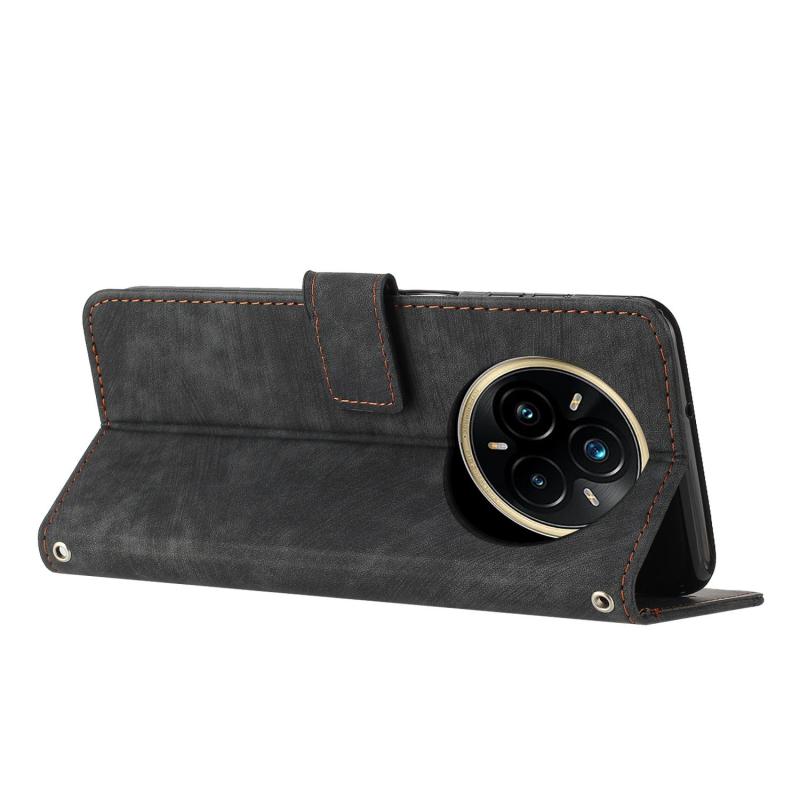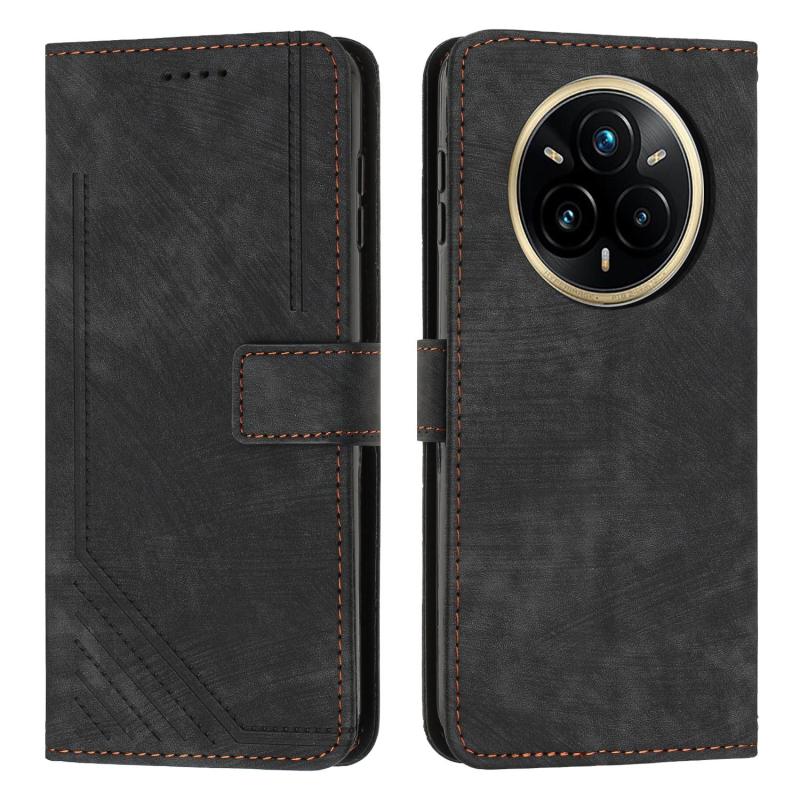 For Realme 14 Pro Skin Feel Stripe Pattern Leather Phone Case with Lanyard(Black)