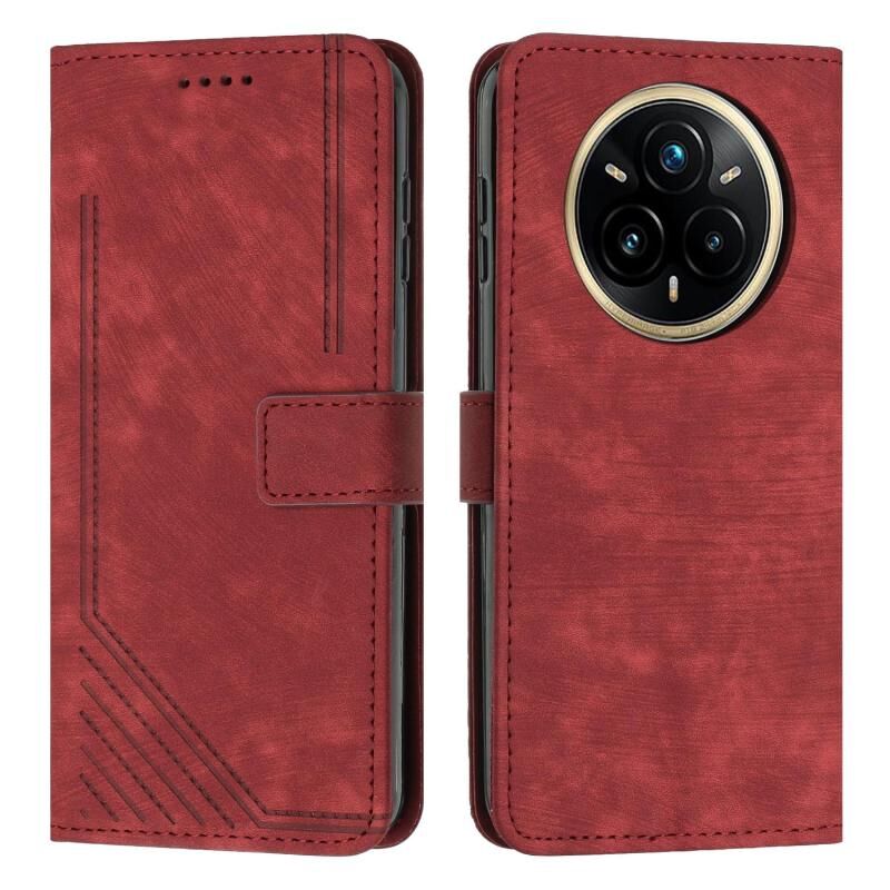 For Realme 14 Pro Skin Feel Stripe Pattern Leather Phone Case with Lanyard(Red)