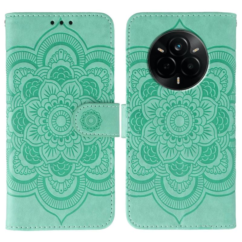 For Realme 14 Pro Sun Mandala Embossing Pattern Phone Leather Case(Green)