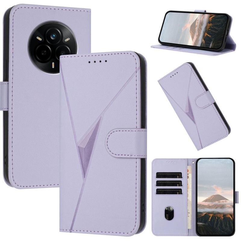 For Realme 14 Pro Triangle Pattern Buckle Clasp Leather Phone Case(Light Purple)