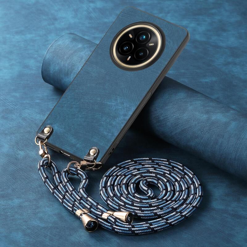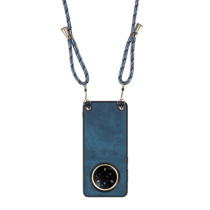 For Realme 14 Pro Vintage Leather PC Back Cover Phone Case with Crossbody Strap(Blue)