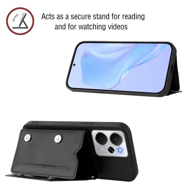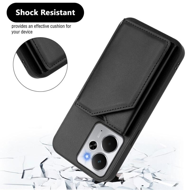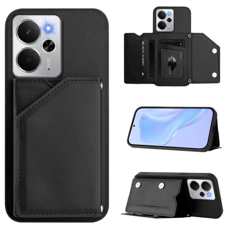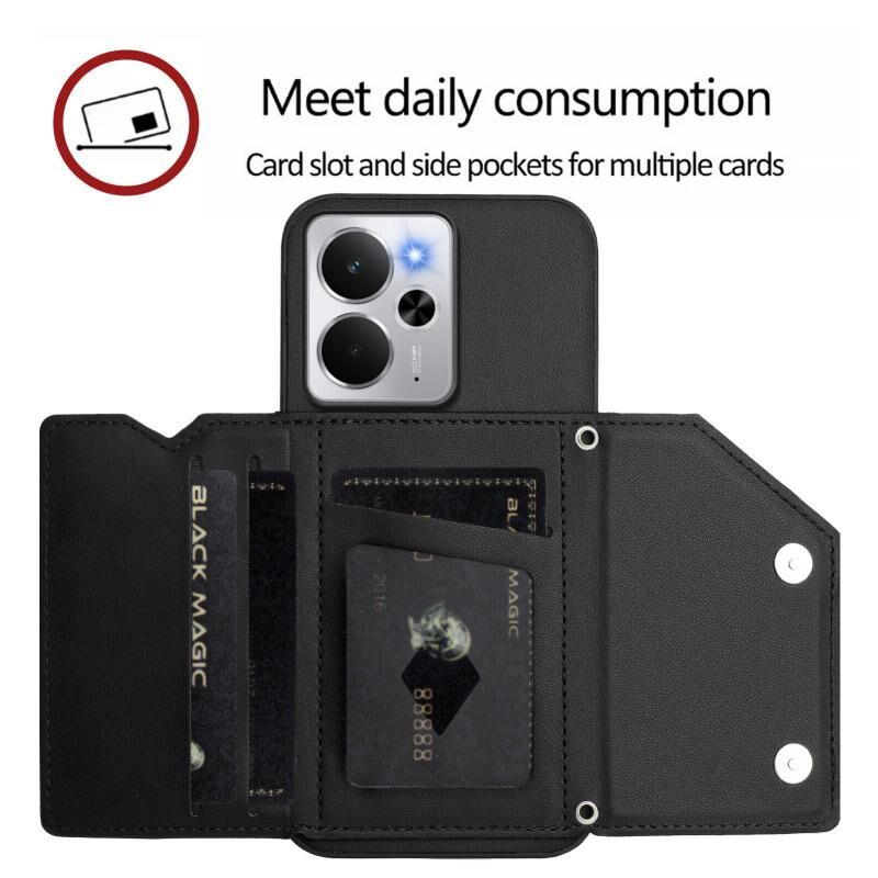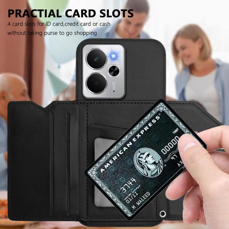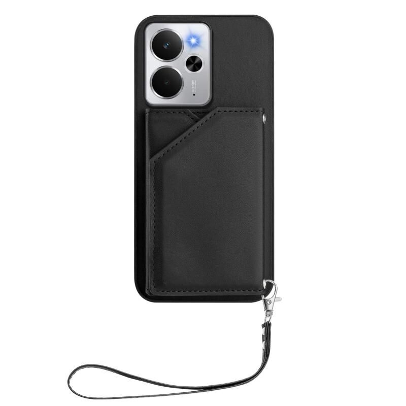 For Realme 14 Skin Feel Four Card Slots Phone Case with Wrist Strap(Black)