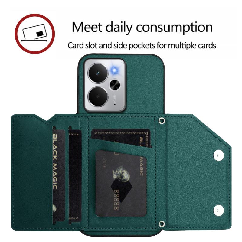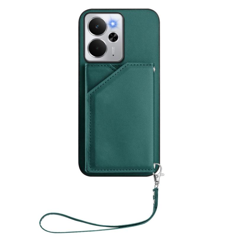 For Realme 14 Skin Feel Four Card Slots Phone Case with Wrist Strap(Green)