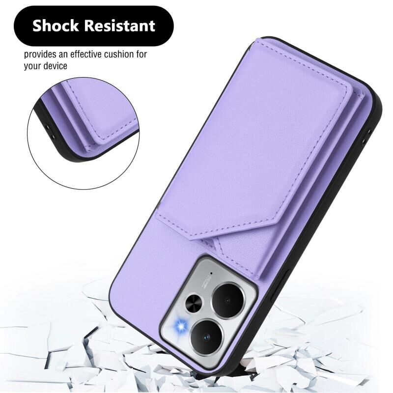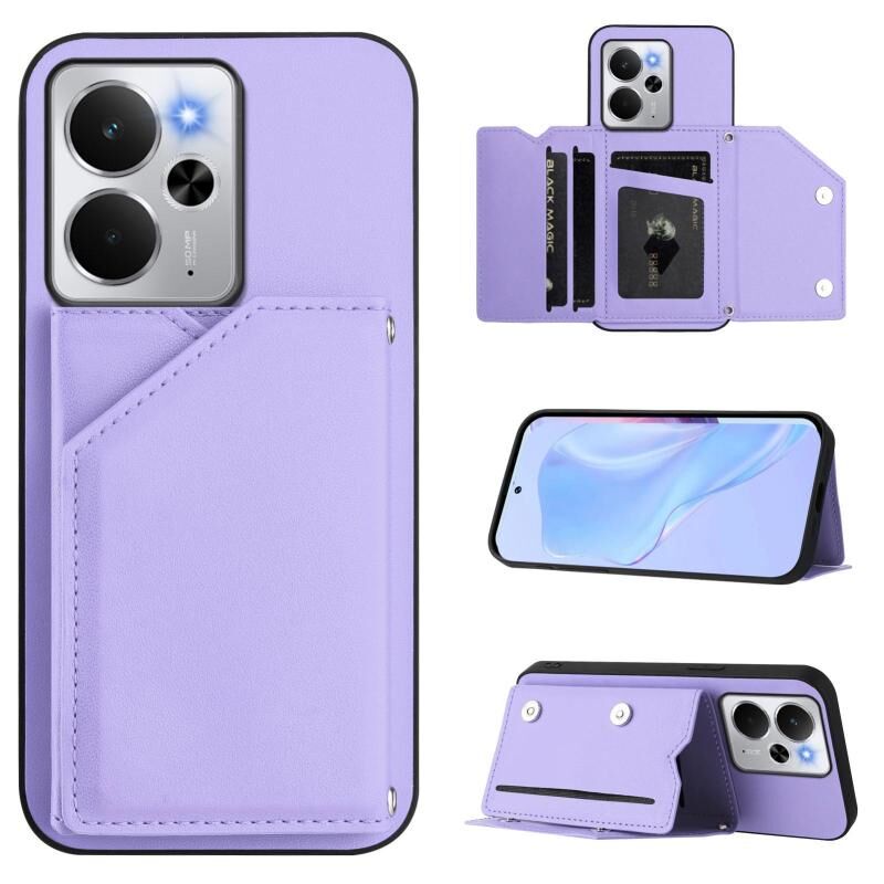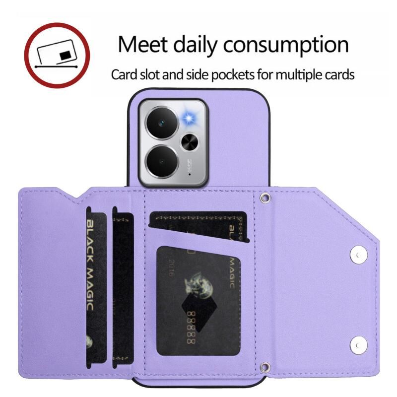For Realme 14 Skin Feel Four Card Slots Phone Case with Wrist Strap(Purple)