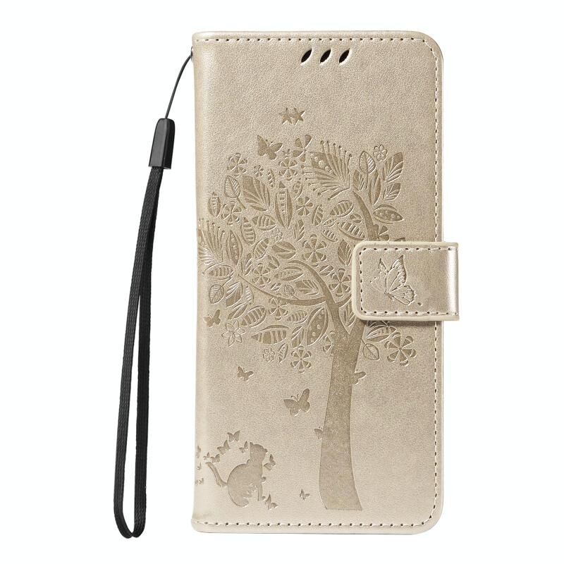 Θήκη τηλεφώνου από δέρμα με σχέδιο αναγλύφου δέντρου & γάτας για Realme 14x 5G Global (Ροζ)