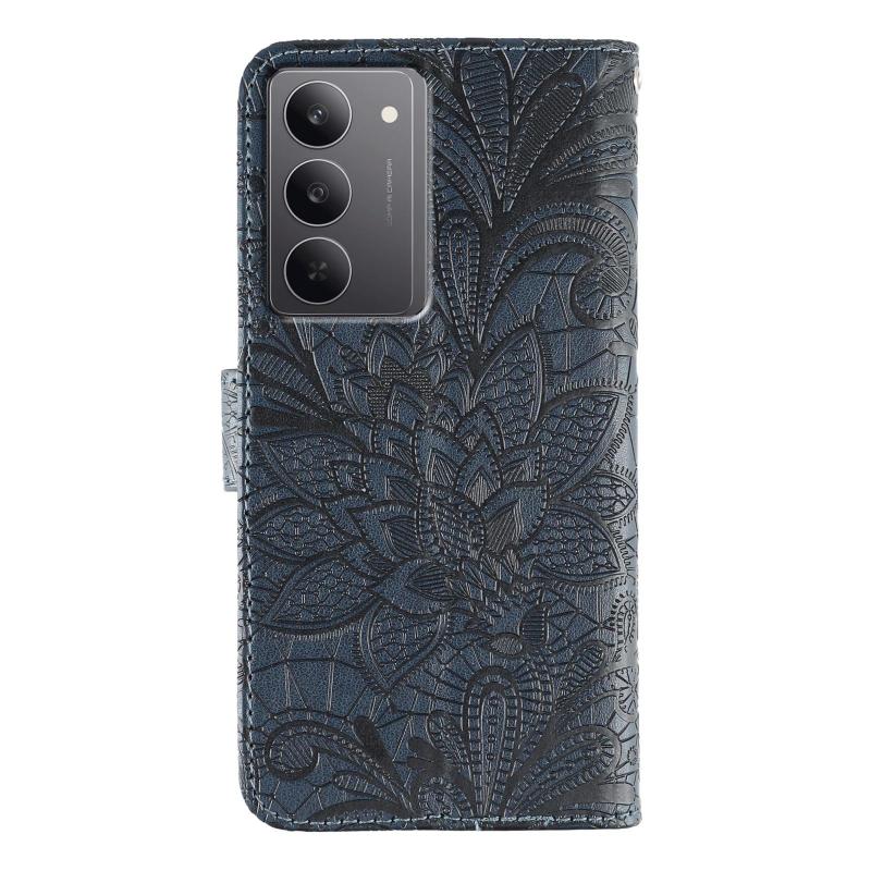 Θήκη Δερμάτινη Flip με Λουλούδια και Δαντέλα για Realme 14x (Σκούρο Μπλε)