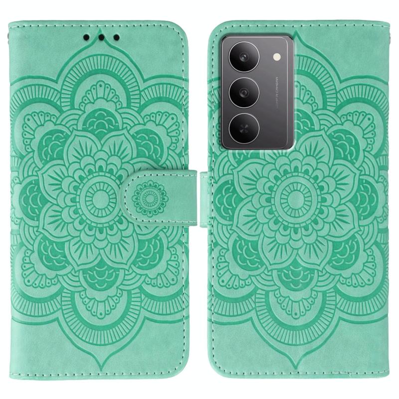 Θήκη Δερμάτινη για Realme 14x με Σχέδιο Sun Mandala (Πράσινο)