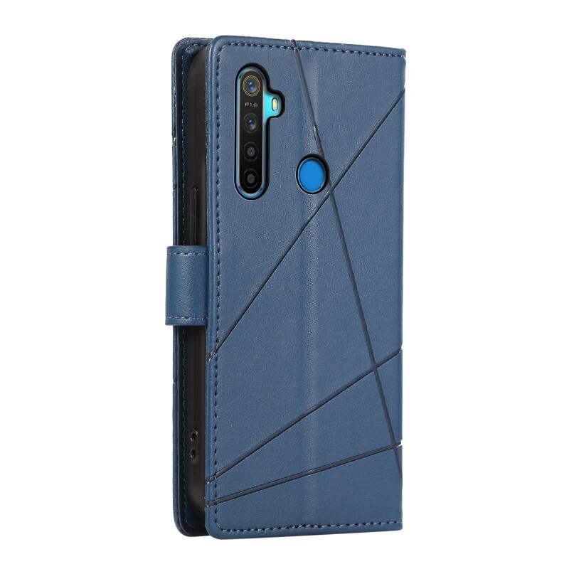 For Realme 5 PU Genuine Leather Texture Embossed Line Phone Case(Blue)