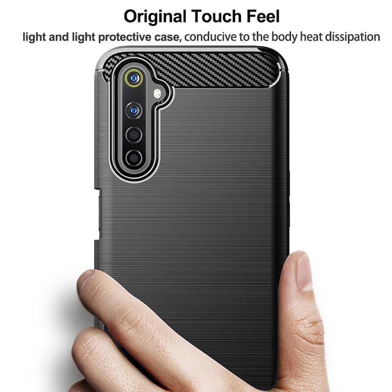 For Realme 6 Brushed Texture Carbon Fiber TPU Phone Case(Blue)