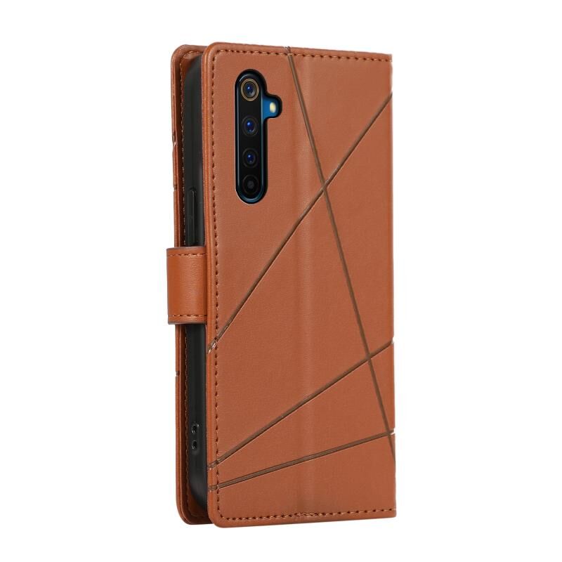 For Realme 6 Pro PU Genuine Leather Texture Embossed Line Phone Case(Brown)