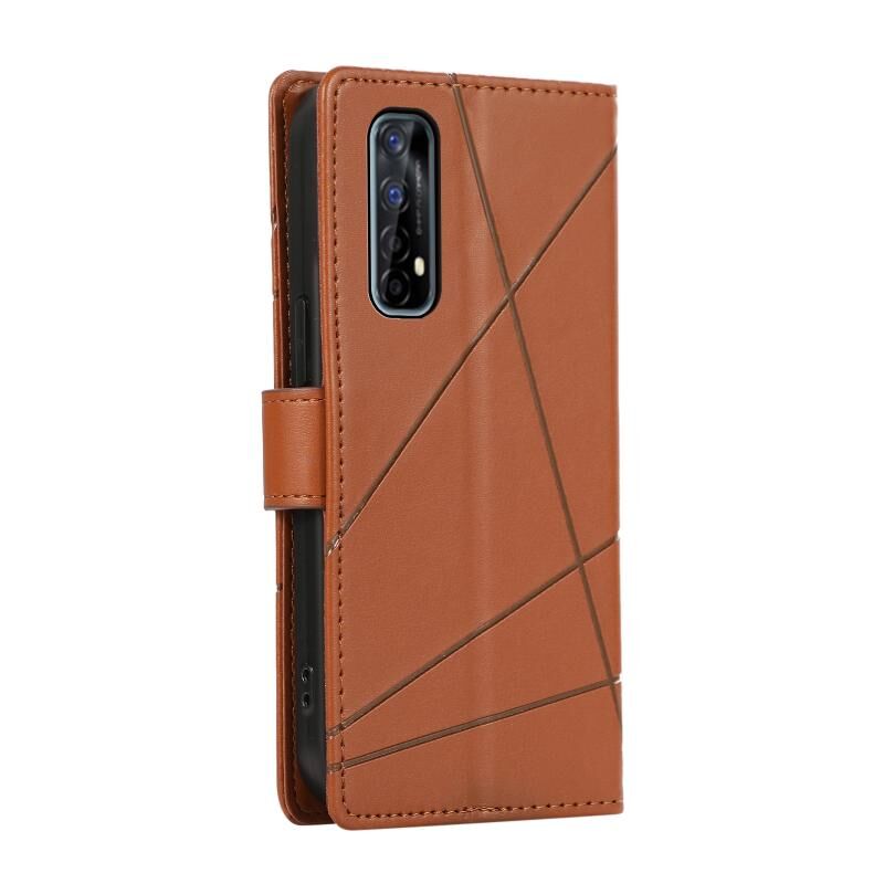 For Realme 7 Pro PU Genuine Leather Texture Embossed Line Phone Case(Brown)