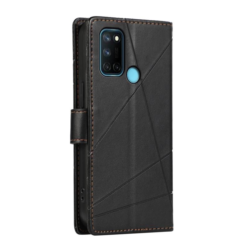 For Realme 7i / C17 PU Genuine Leather Texture Embossed Line Phone Case(Black)
