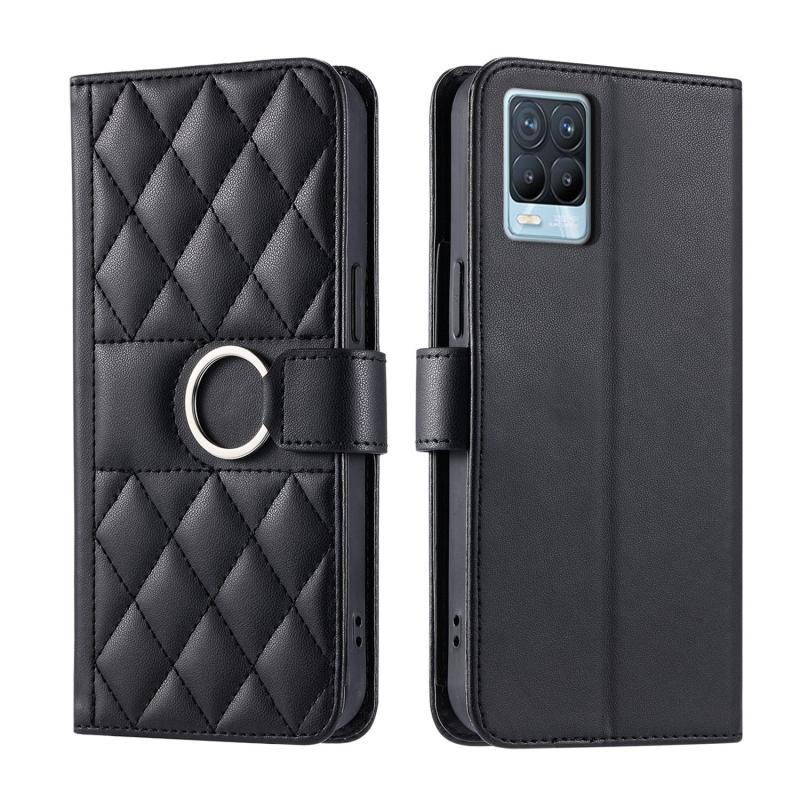 For Realme 8 4G / 8 Pro 4G Ring Buckle Rhombic Leather Phone Case(Black)