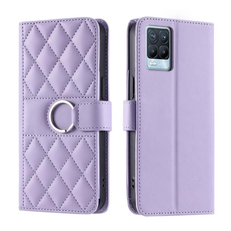 For Realme 8 4G / 8 Pro 4G Ring Buckle Rhombic Leather Phone Case(Purple)