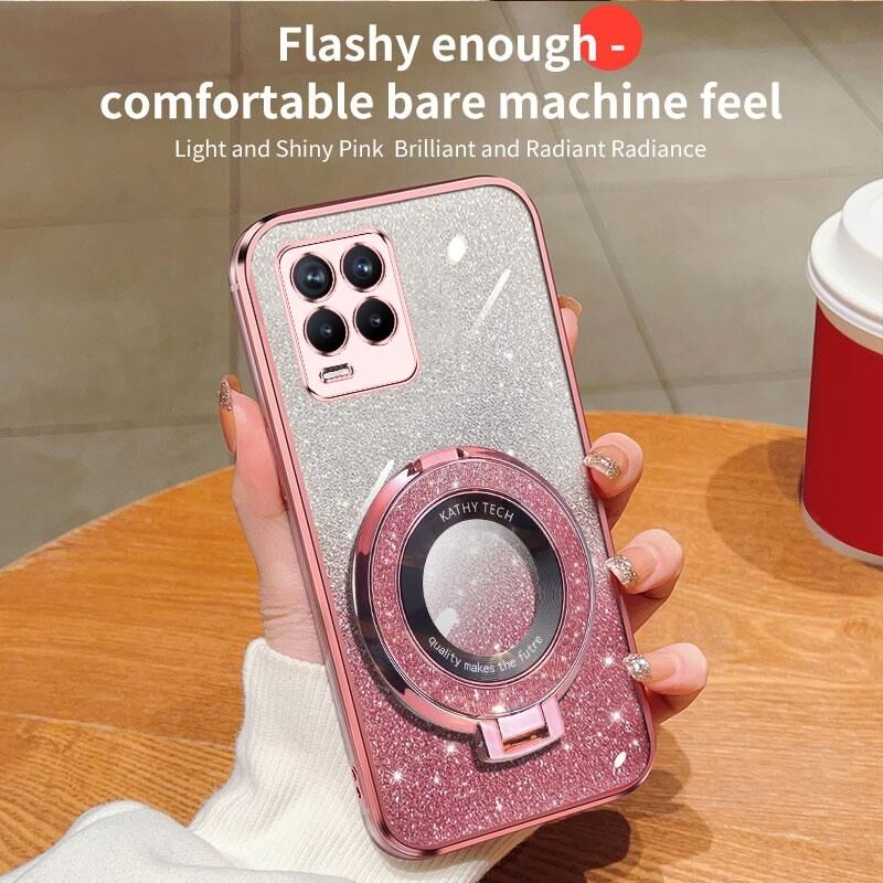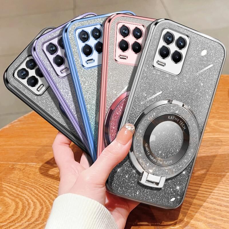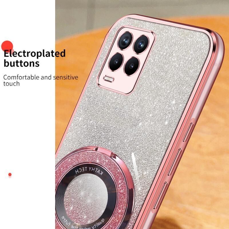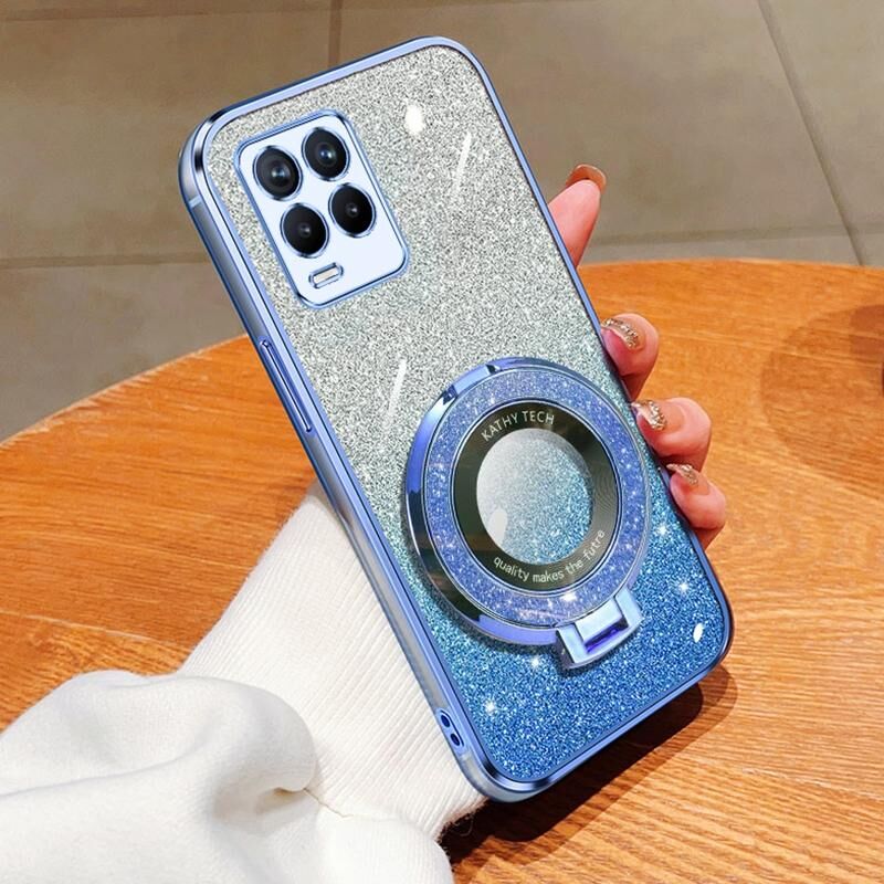 For Realme 8 4G / 8 Pro Plated Gradient Glitter Round Holder TPU Phone Case(Sierra Blue)