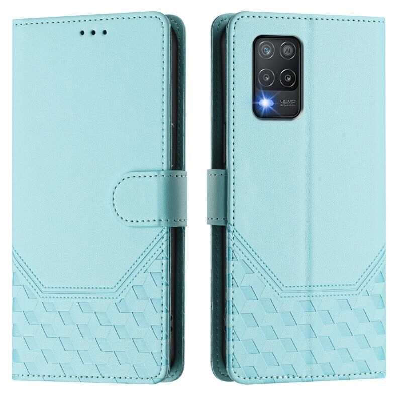 Για Realme 8 5G / V13 5G / Q3 5G Honeycomb ανάγλυφη RFID δερμάτινη θήκη τηλεφώνου (πράσινο μέντα)