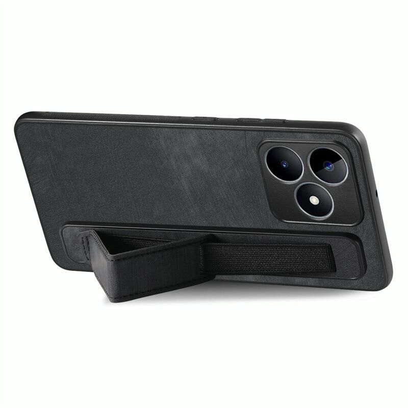 For Realme 8 5G / V13 5G Retro Wristband Holder Leather Back Phone Case(Black)